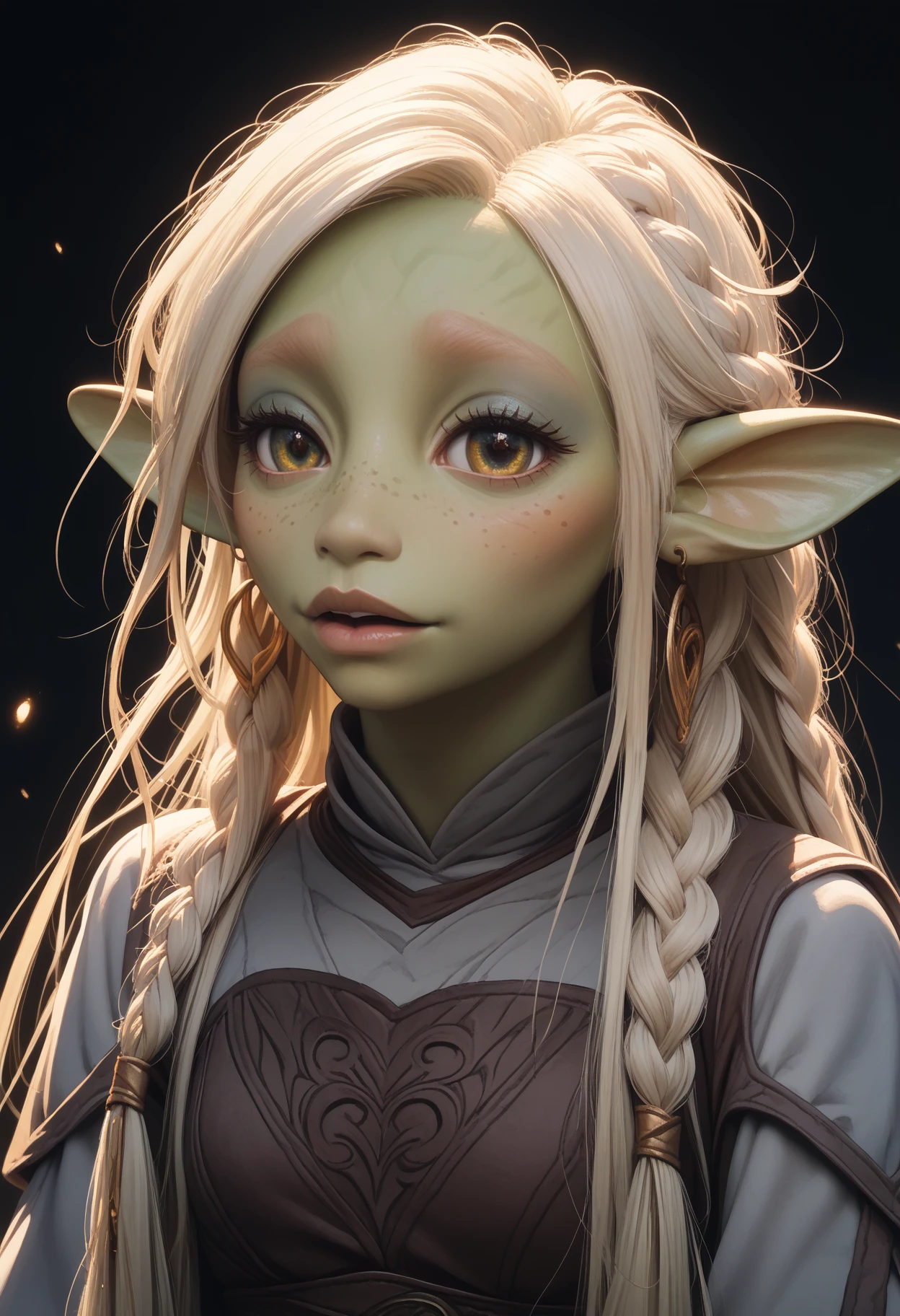 1girl, solo, elf, pointy ears, animal ears, colored skin, green skin, lips,