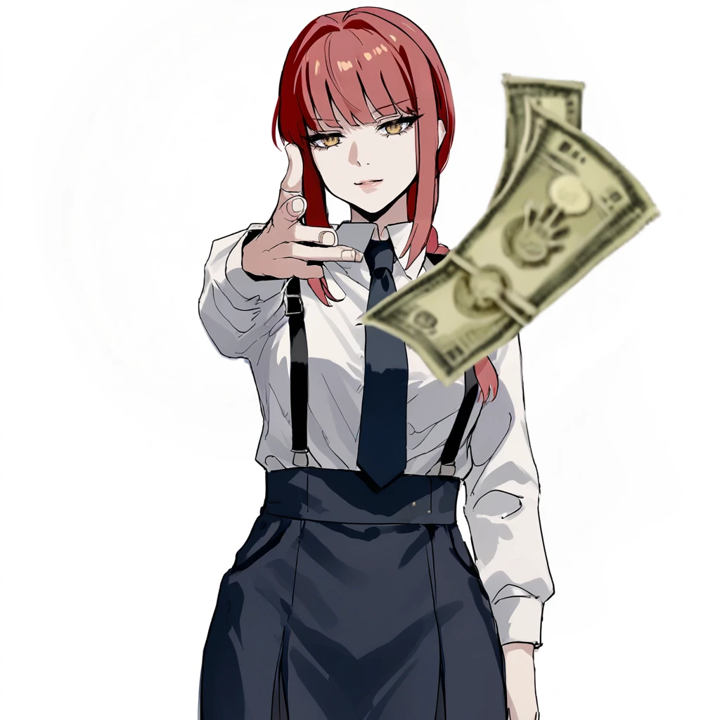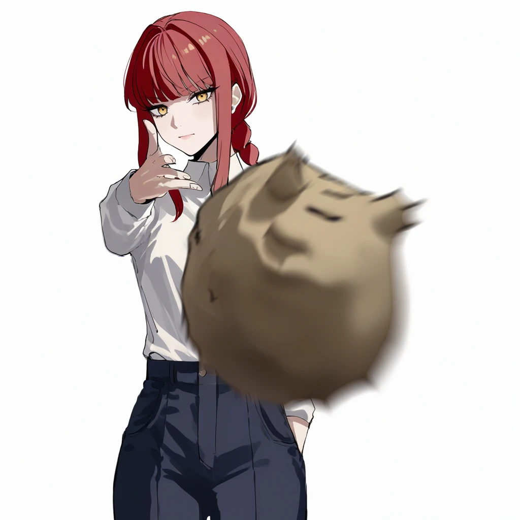 white background, cowboy shot, throwing at viewer