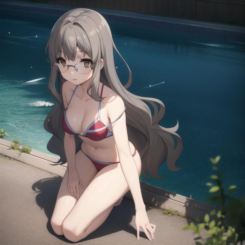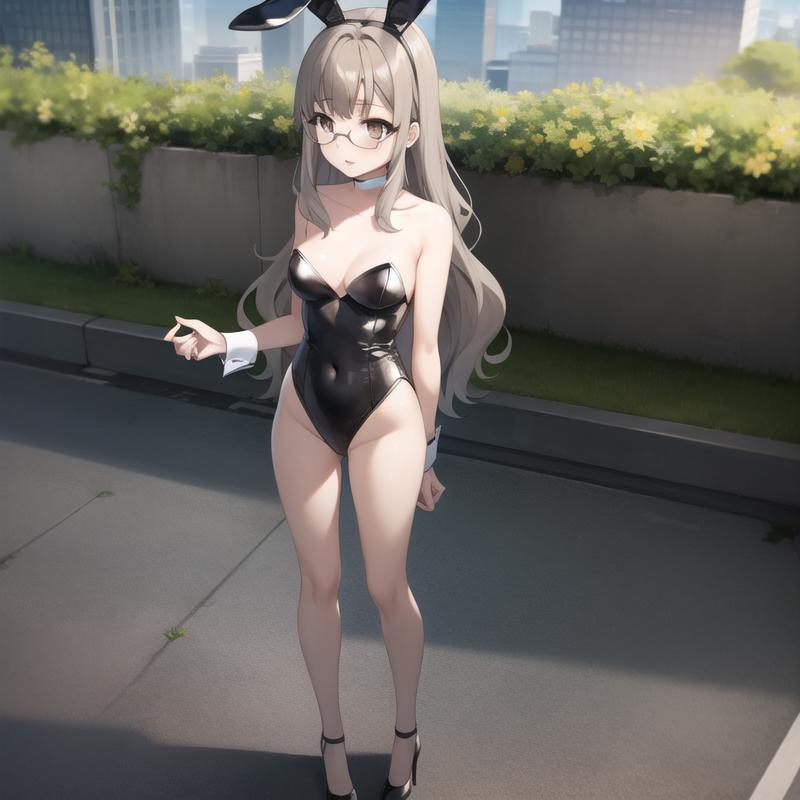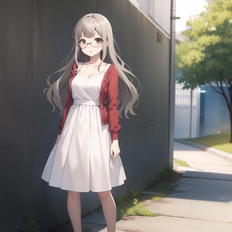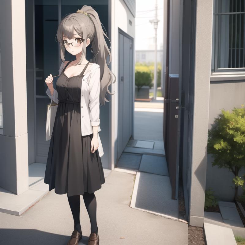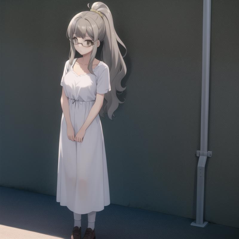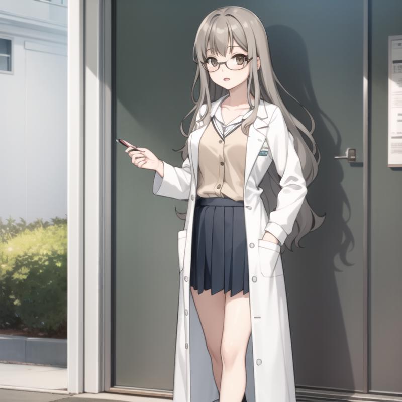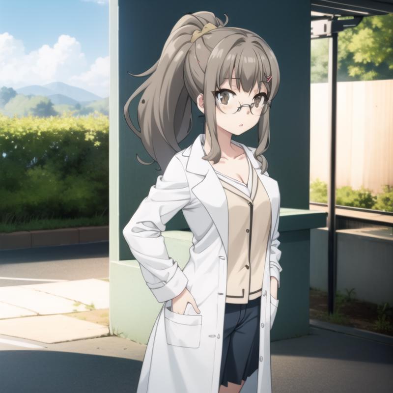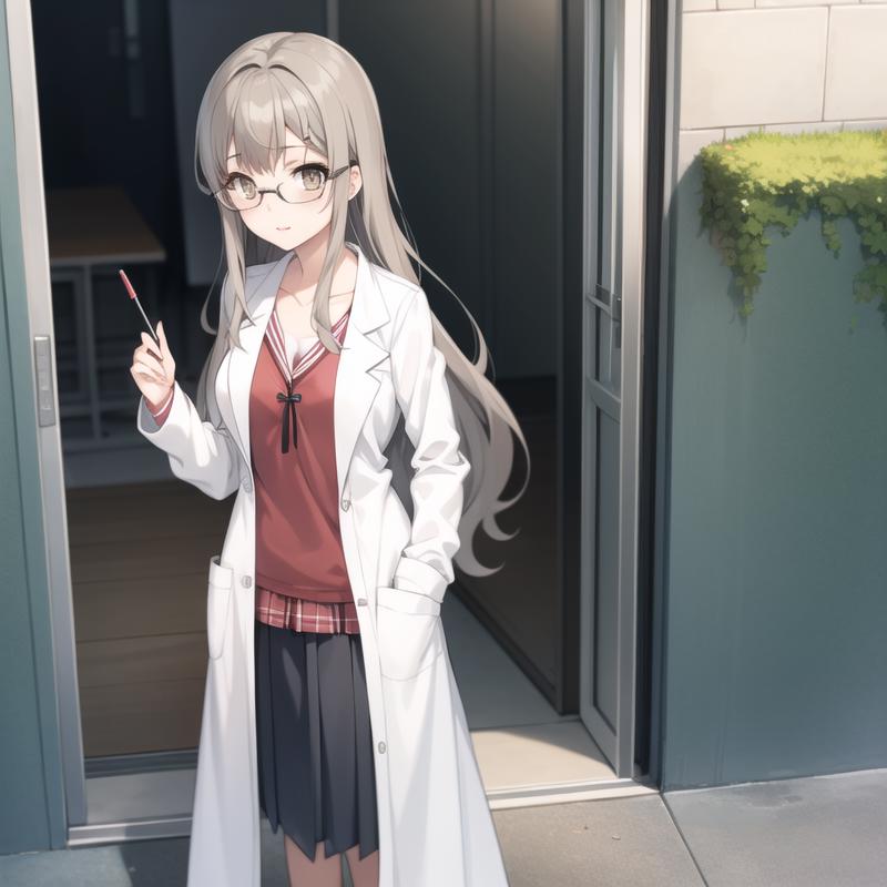 Trigger Word: seishun-futaba, grey hair, light brown eyes, glasses, ponytail, long hair, labcoat, school uniform
