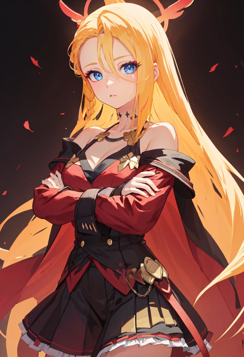 - The pruned character tags are blonde hair, breasts, long hair, blue eyes, large breasts, ponytail, halo, braid, hair between eyes. You can add them into prompts when core features (e.g. hair color) of character is not so stable.
