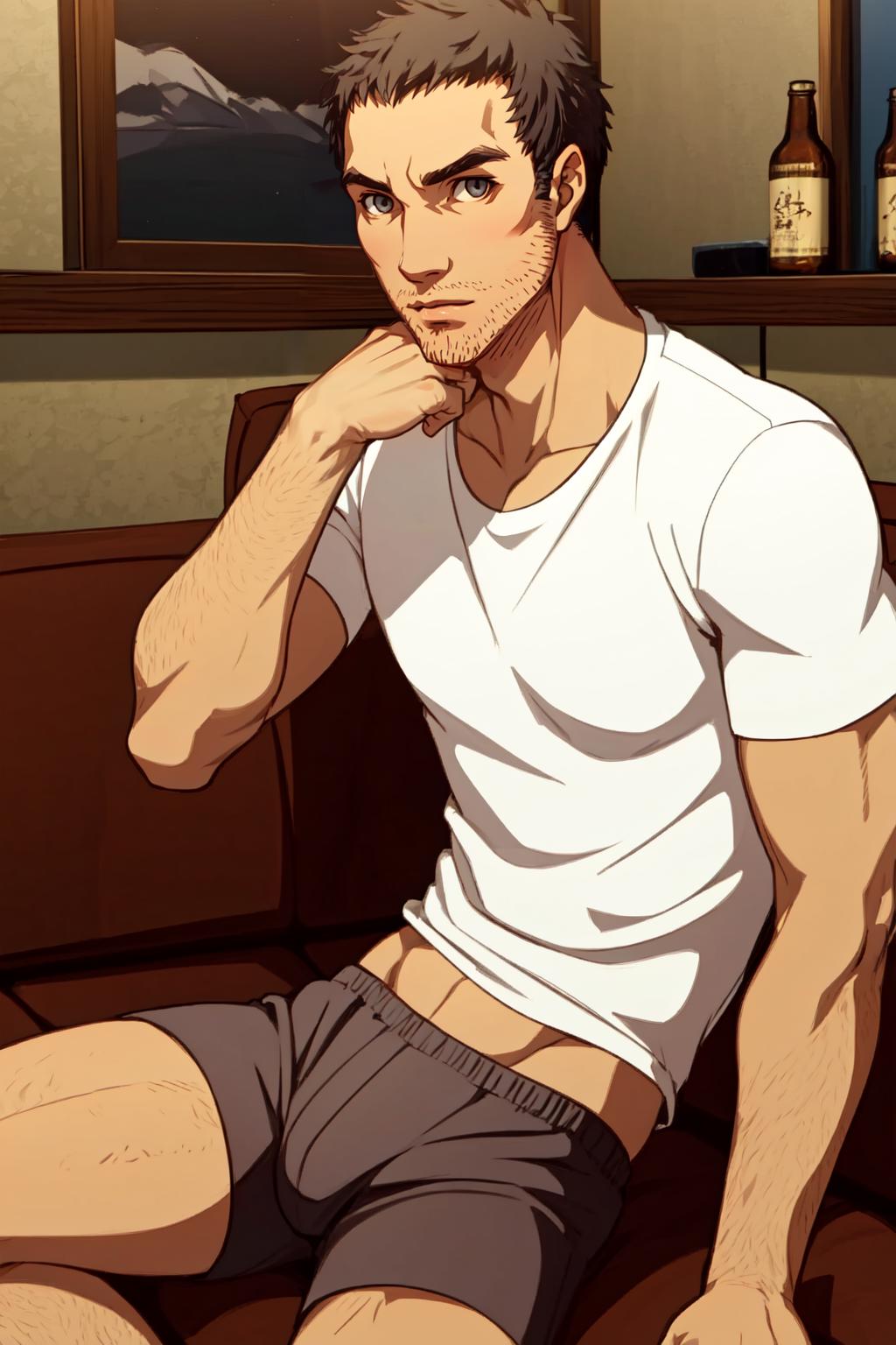 *Note: I usually use maturemalemix, HMen Mix, and Virile Fusion, but I suppose any would work. Use Adetailer to get the best results. It also helps to specify tags like "mature male, grey eyes, grey shirt, black pants, black shoes / black socks / barefoot, etc." to get most of his look down, otherwise, you can change or ??????? him to your liking. lol 😜