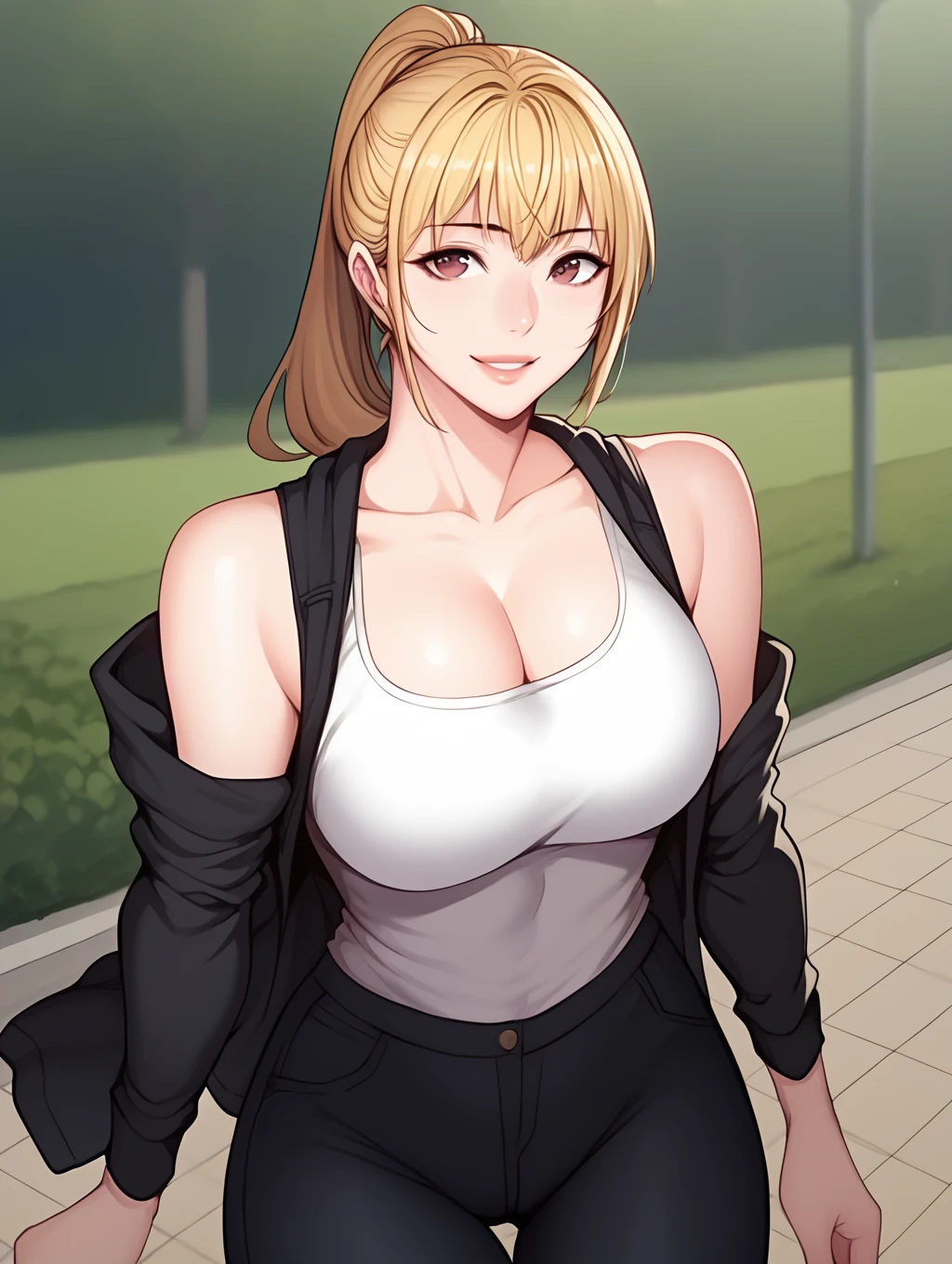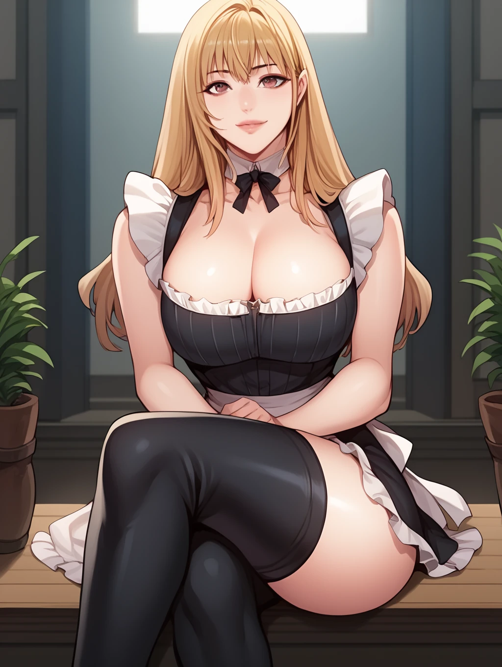 tag: 1girl, liya, breasts, blonde hair, long hair, solo, large breasts, brown eyes