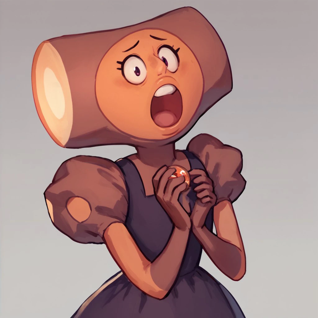 tiny jade, chubby cheeks, bobbed hair, pointy hair, drape shoulder pads, chest gem, triangular gem, tiny jade dress,