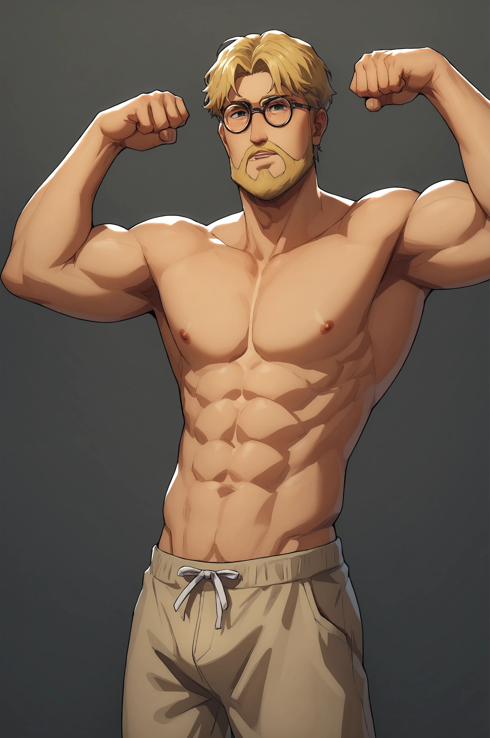 ZekeYeager, glasses, beard, mustache, blonde hair