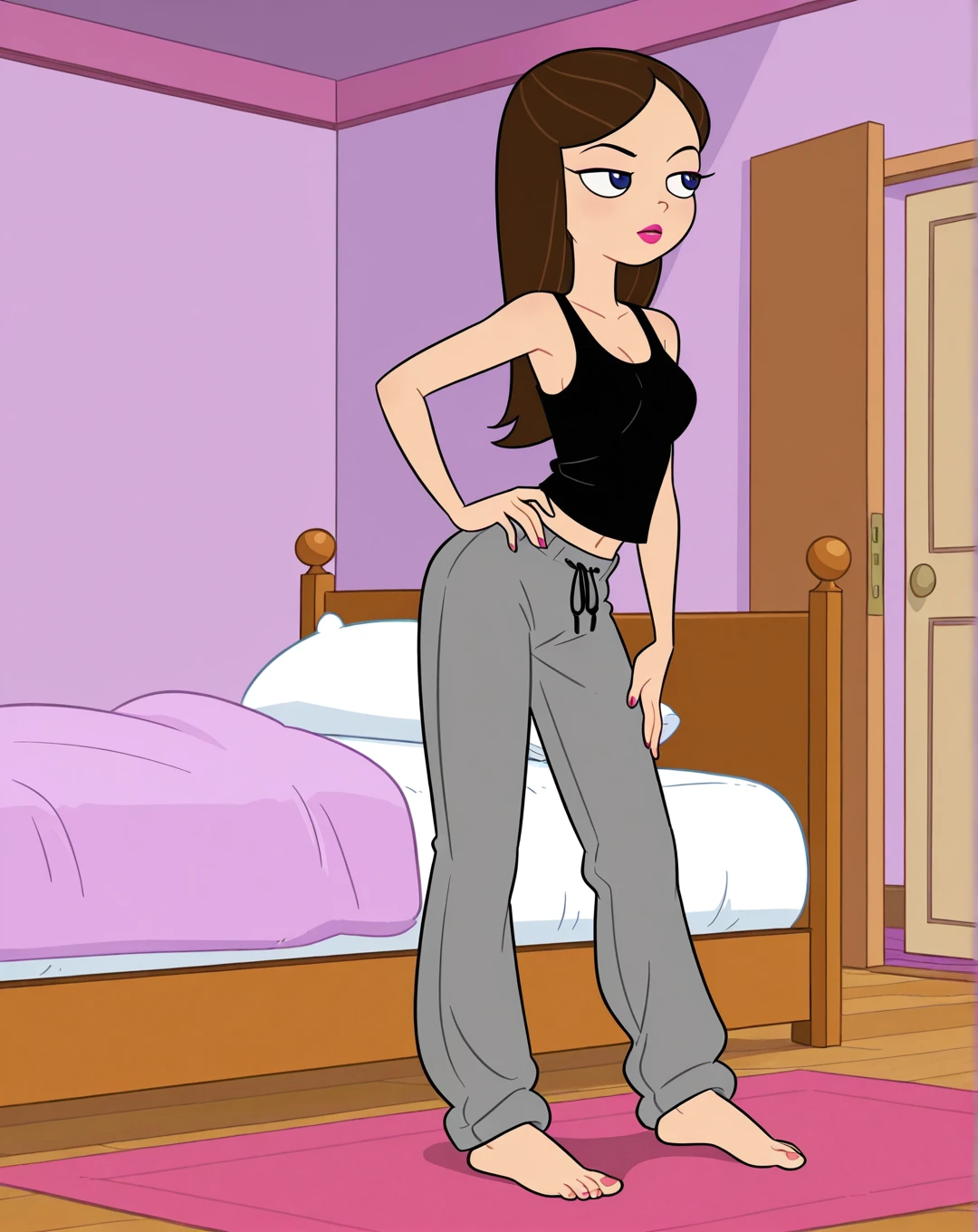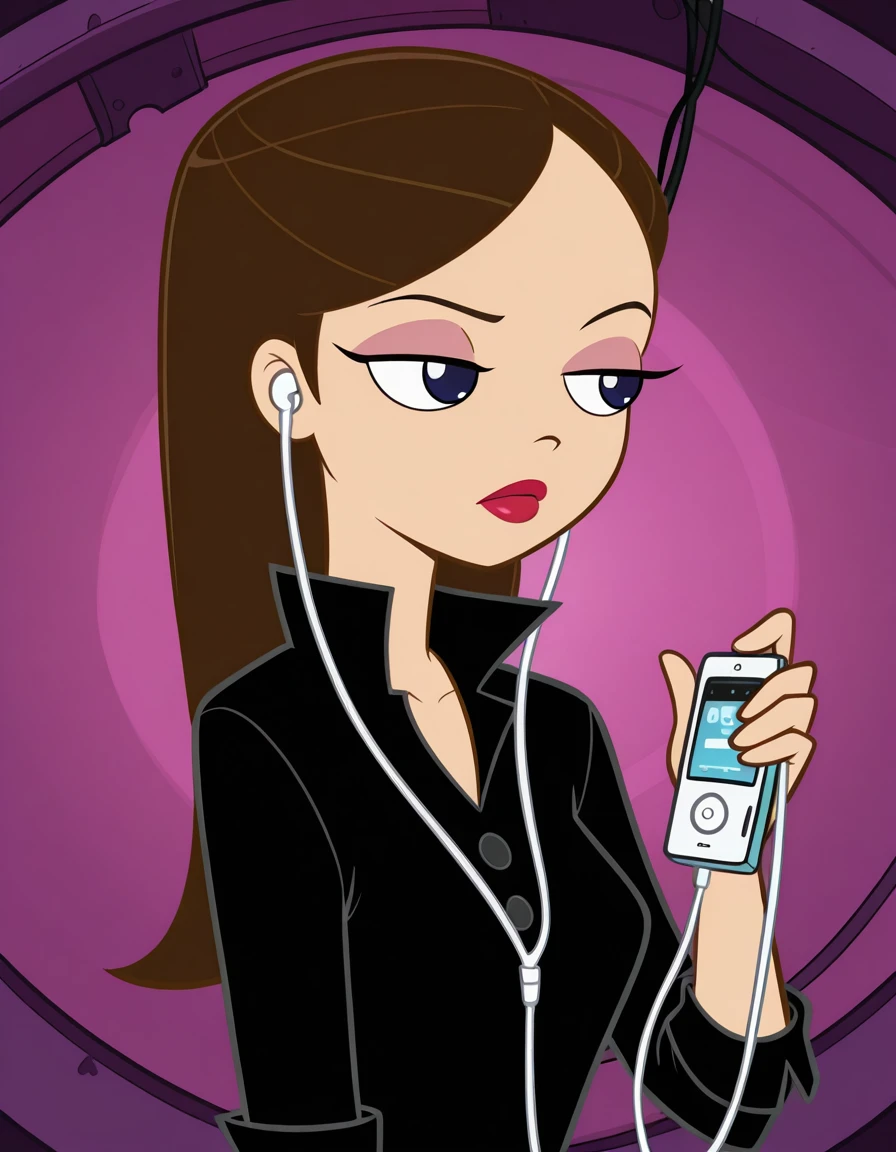 This LoRA perfectly captures Vanessa Doofenshmirtz, the deadpan, goth-punk, “too-cool-for-this-family” daughter of Dr. Doofenshmirtz from Phineas and Ferb (voiced by Olivia Olson). Effortlessly sarcastic, secretly soft-hearted, and perpetually embarrassed by her dad’s evil schemes, Vanessa is the ultimate “I’m surrounded by idiots” teenager who just wants to hang with her boyfriend Johnny, listen to alt-rock, and maybe inherit an evil empire someday. The model locks her classic Seasons 1–4 design: black hair, all-black outfit, and eternal “seriously?” expression.