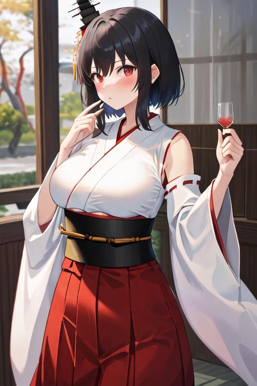 The trigger word is yamashiro_kantaicollection, and the recommended tags are best quality, masterpiece, highres, solo, {yamashiro_kantaicollection:1.15}, black_hair, red_eyes, short_hair, hair_ornament, nontraditional_miko, breasts, blush, large_breasts.