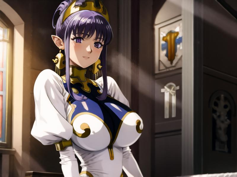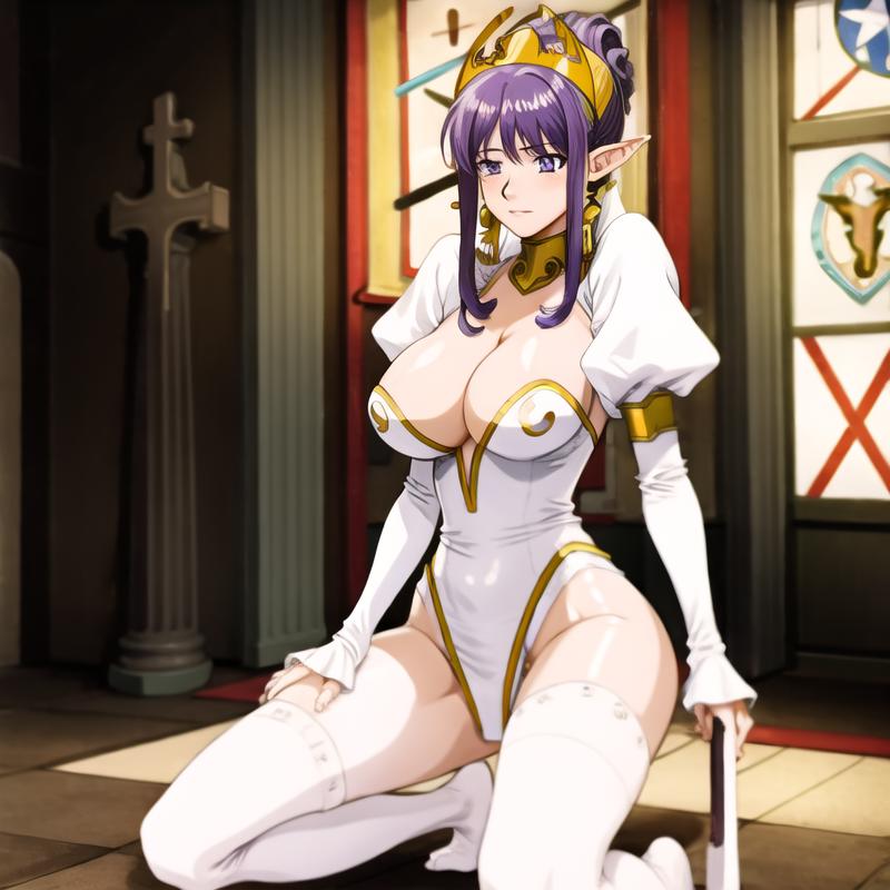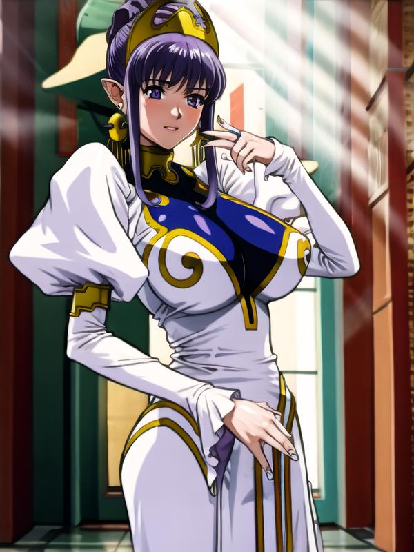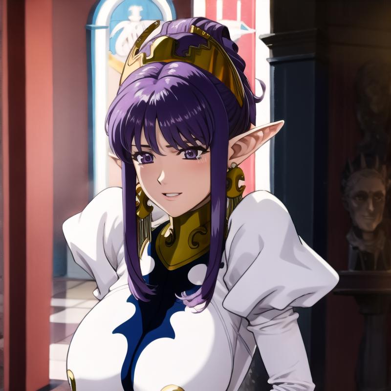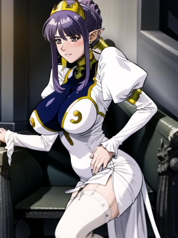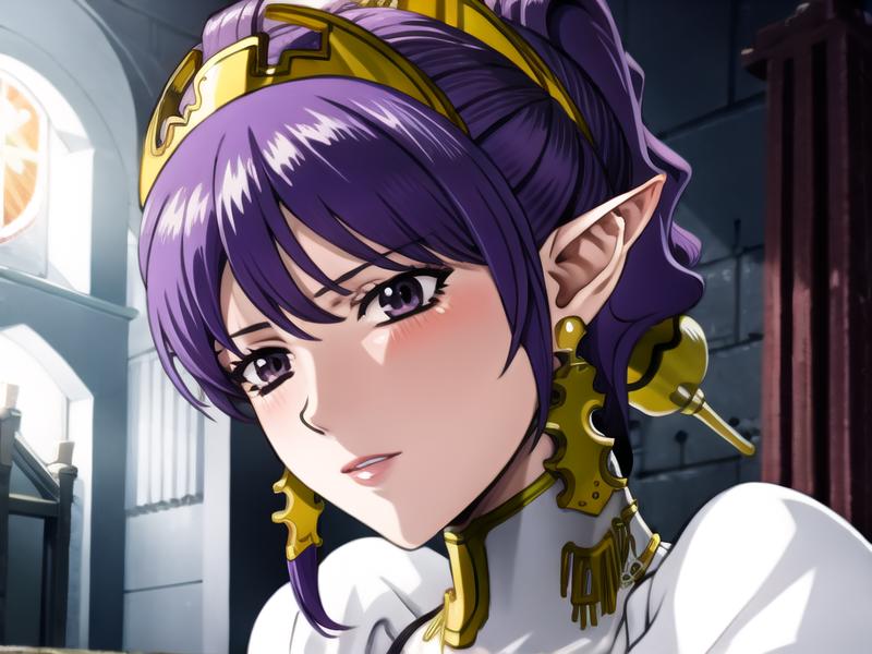 julietta,purple hair,purple eyes, white dress,