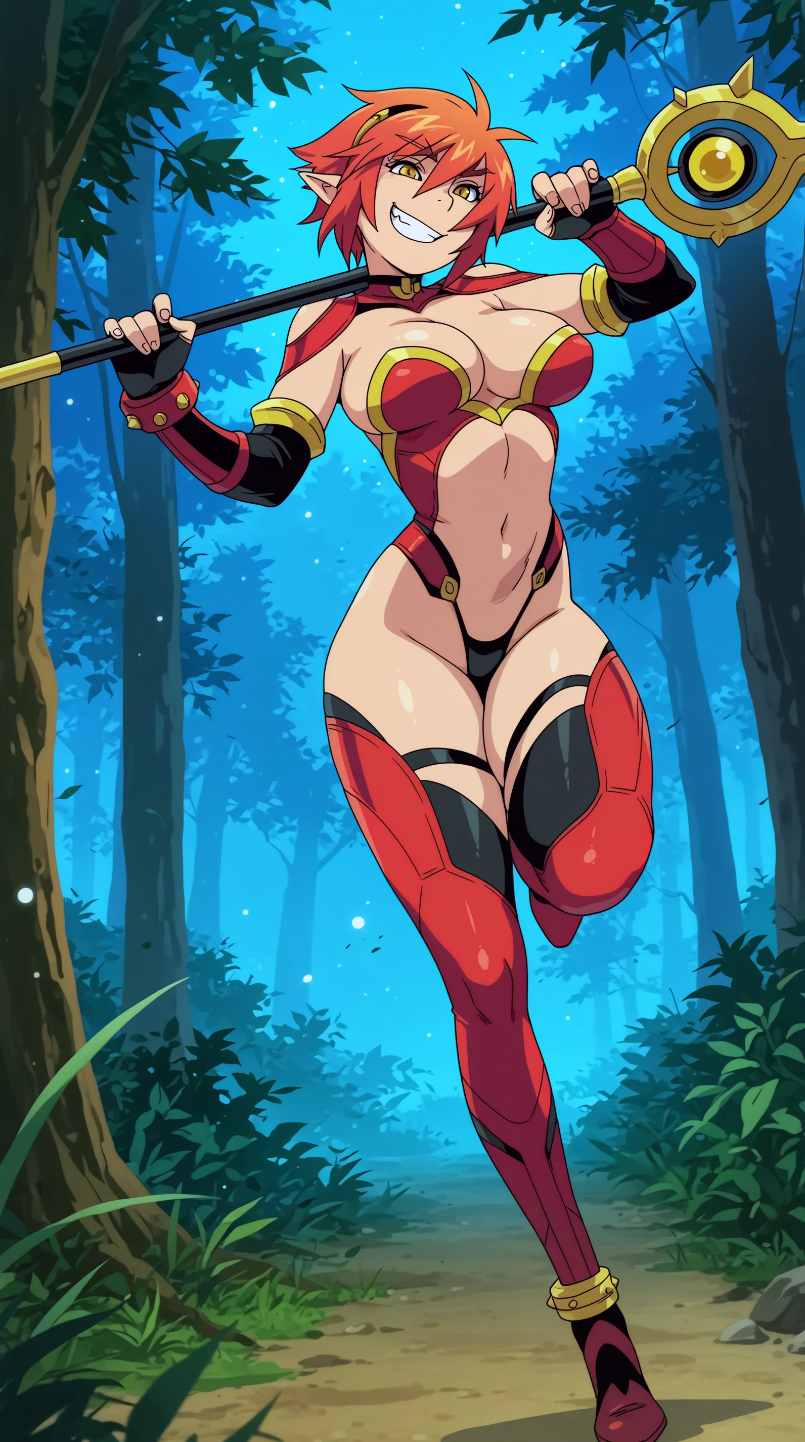 Trigger Words Optionnal: breasts, cleavage, fingerless gloves, gloves, navel, hair over one eye, red thighhighs