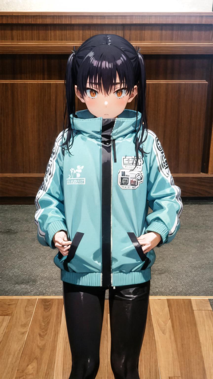 Tamaki Kotatsu, twintails, black hair, long hair, bangs, blush, orange eyes,