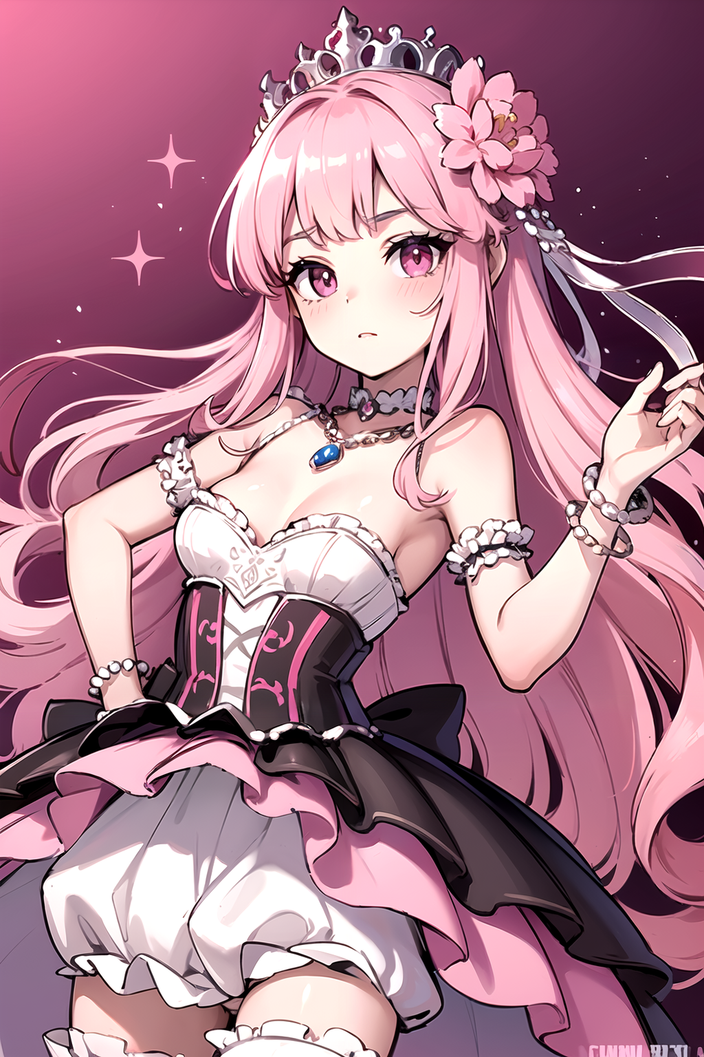 我个人使用的混合,我决定发布。为大胆风格的可爱人物而调整--非常擅长哥特式洛丽塔时装、公主和其他类似的华丽服装。在详细、有趣的背景上比其他类似风格的模型表现得更好。