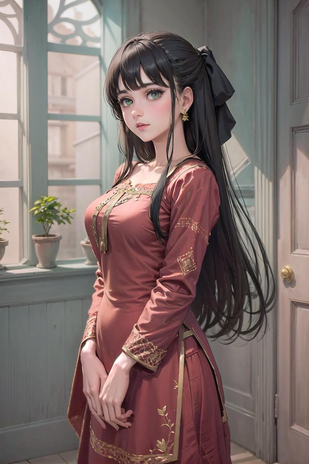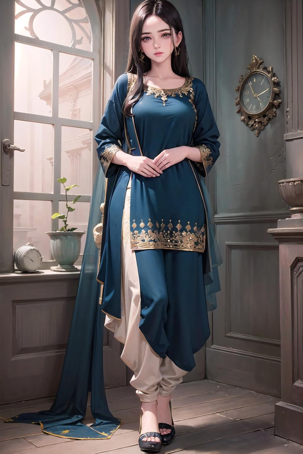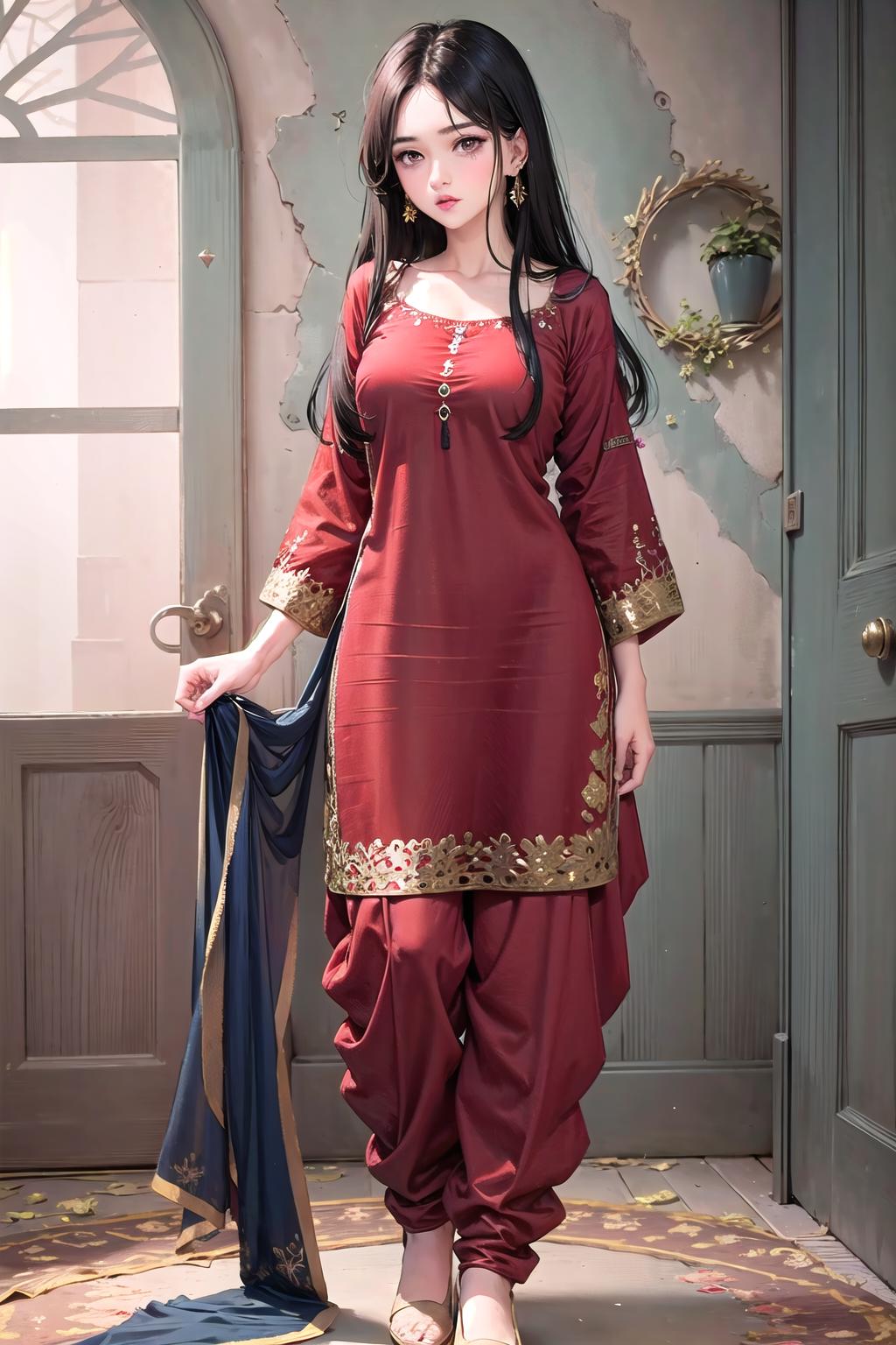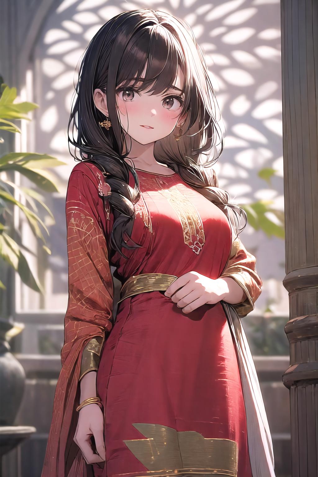 Helpers/Additional: dupatta, embroidery, <your_color> dress