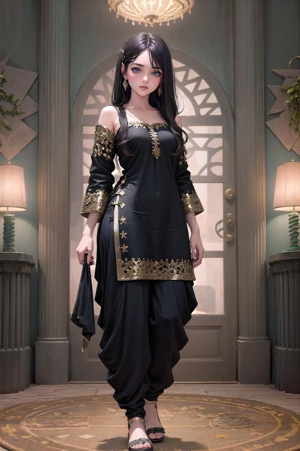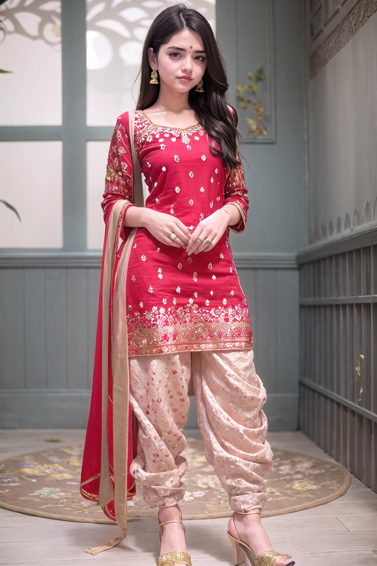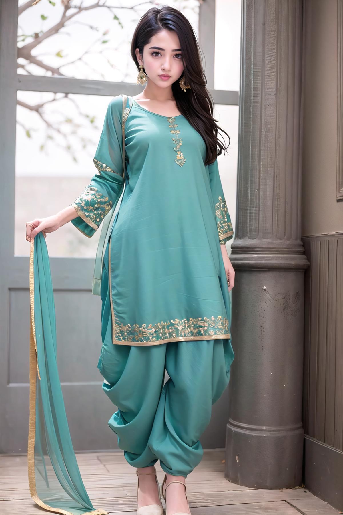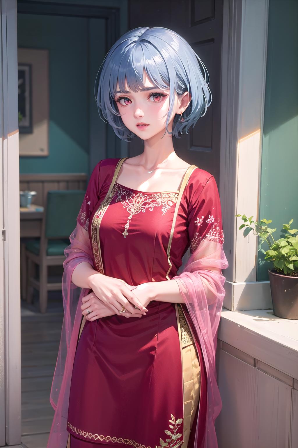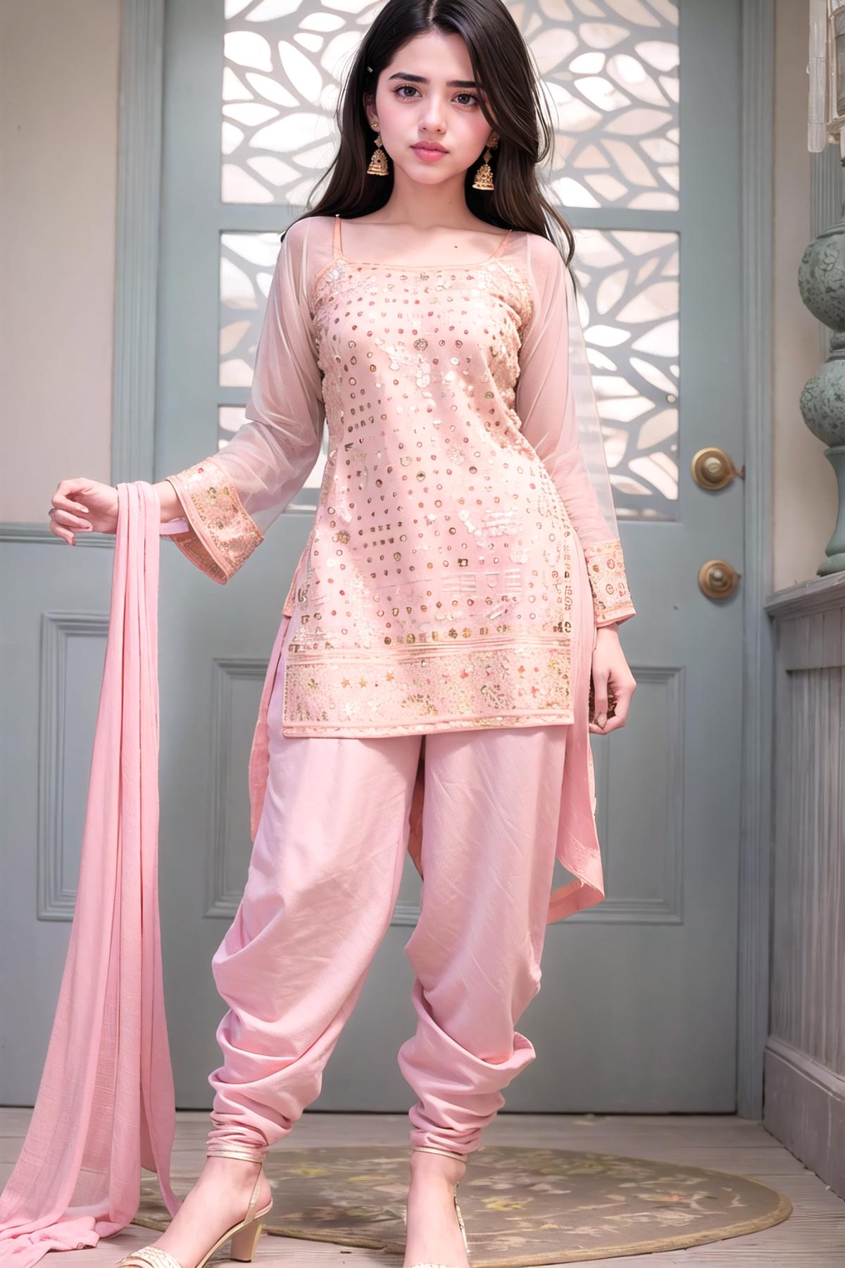 Helpers/Additional: dupatta, embroidery, <your_color> dress