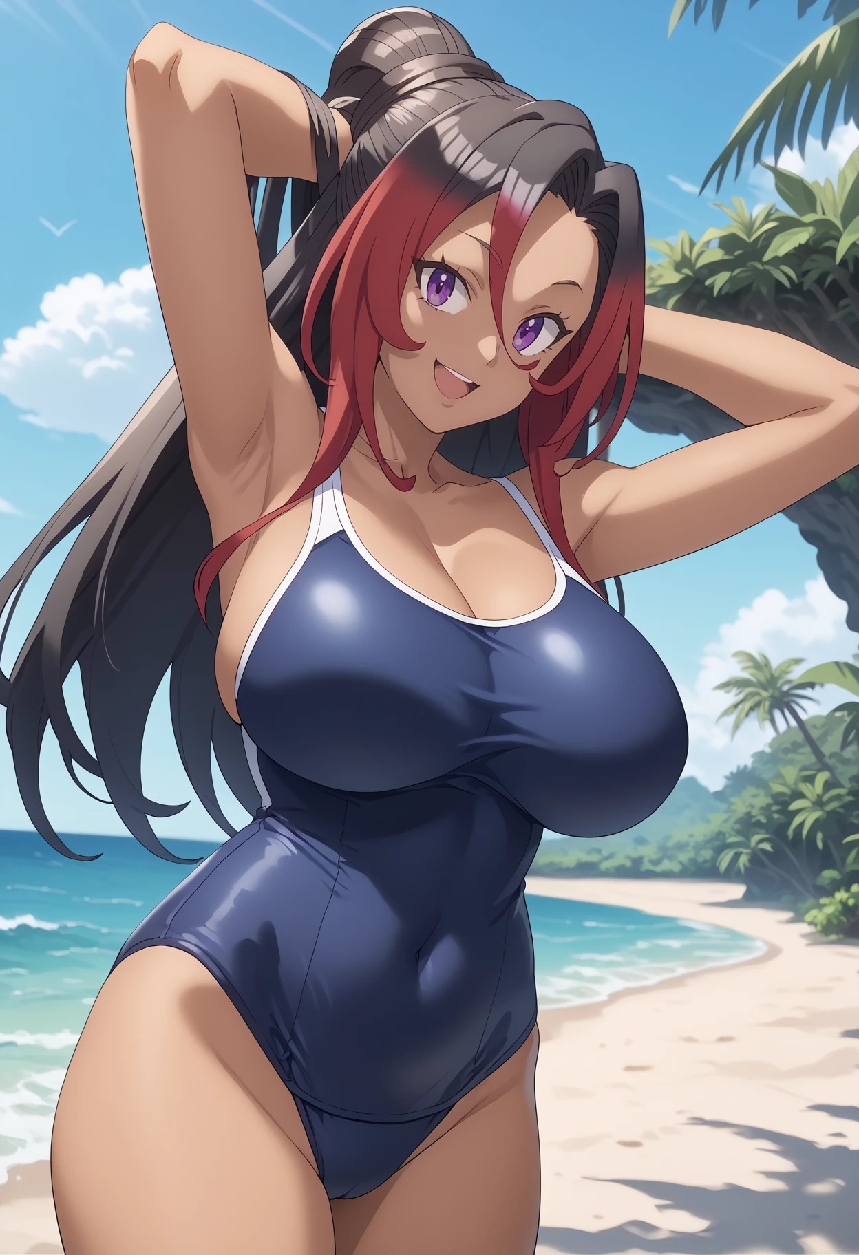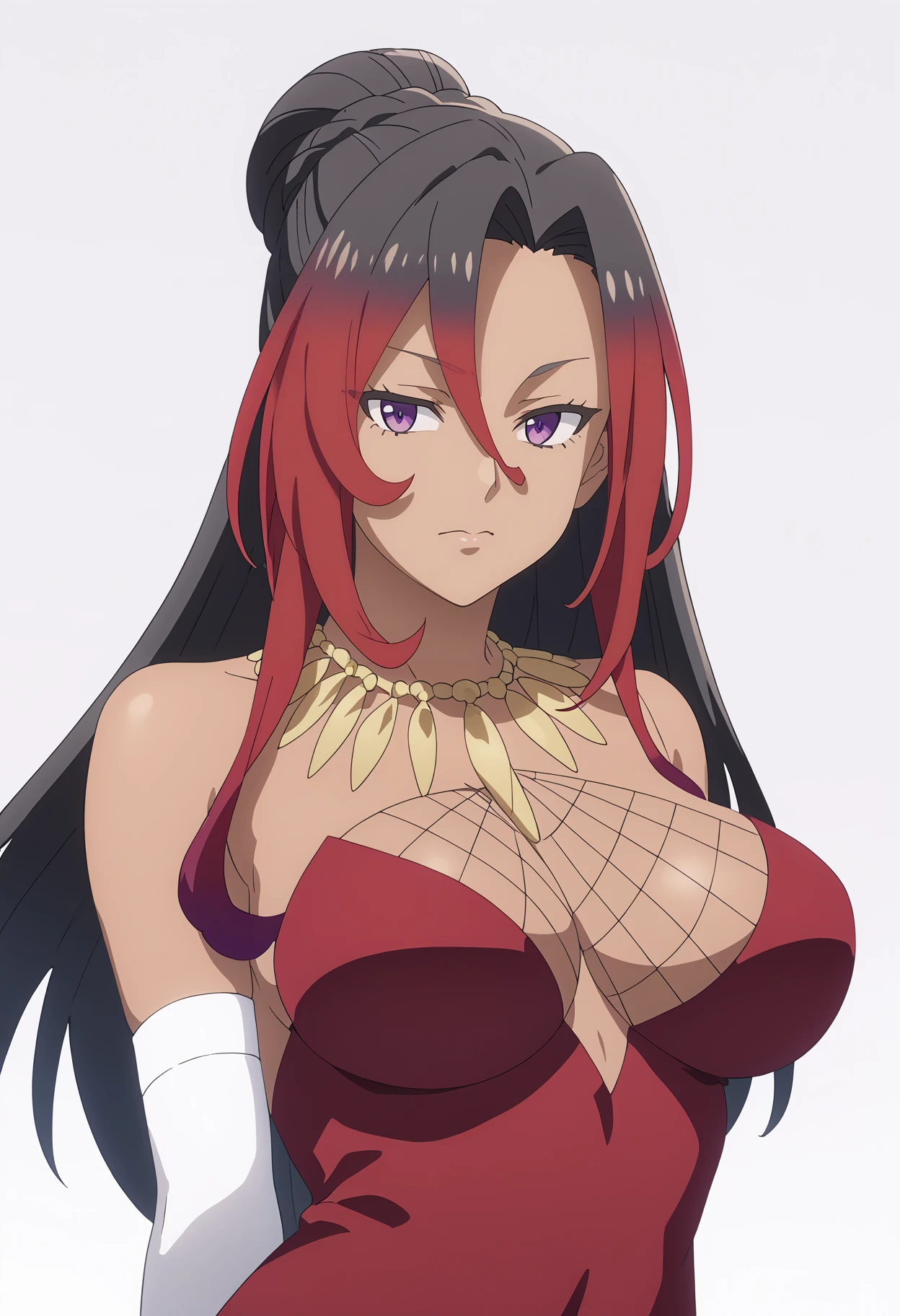 1girl, sylvia, multicolored hair, long hair, black hair, red hair, purple eyes, dark skin