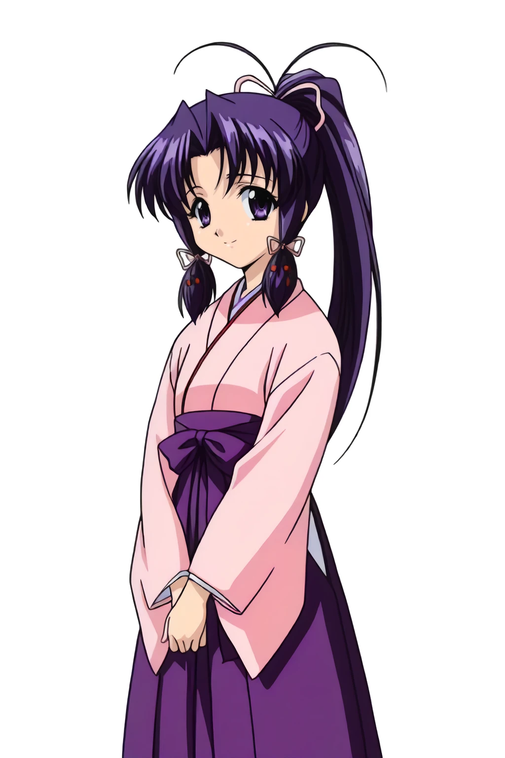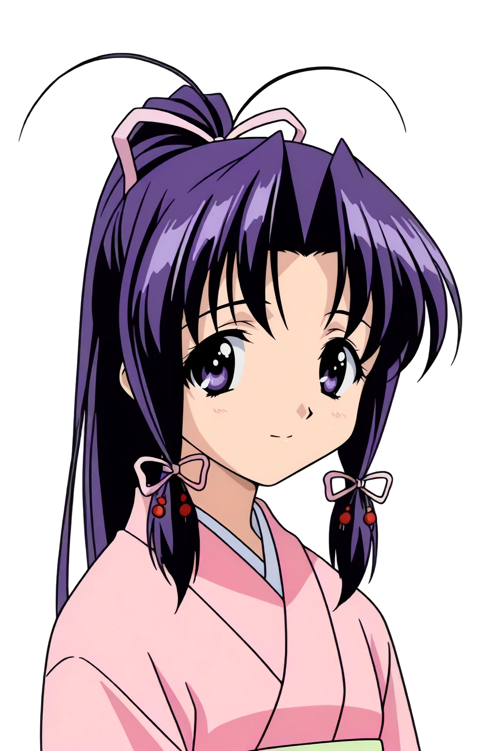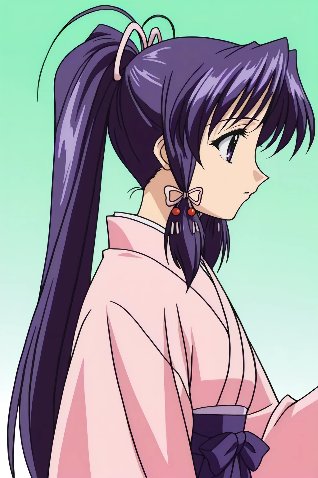 hair ribbon, headband, high ponytail, kimono, long hair, long sleeves, sidelocks