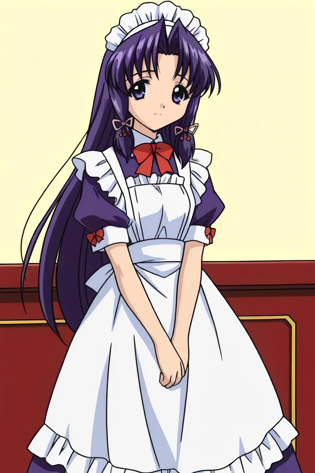 dress, frills, long hair, maid, maid headdress, short sleeves, waitress, white maid apron