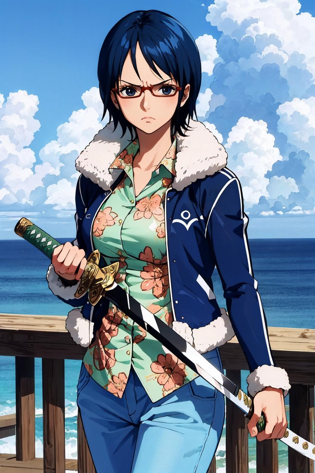 Contains her pre-timeskip outfit, three post-timeskip outfits, and her swimsuit. Trigger word is "tashigi" for all outfits.