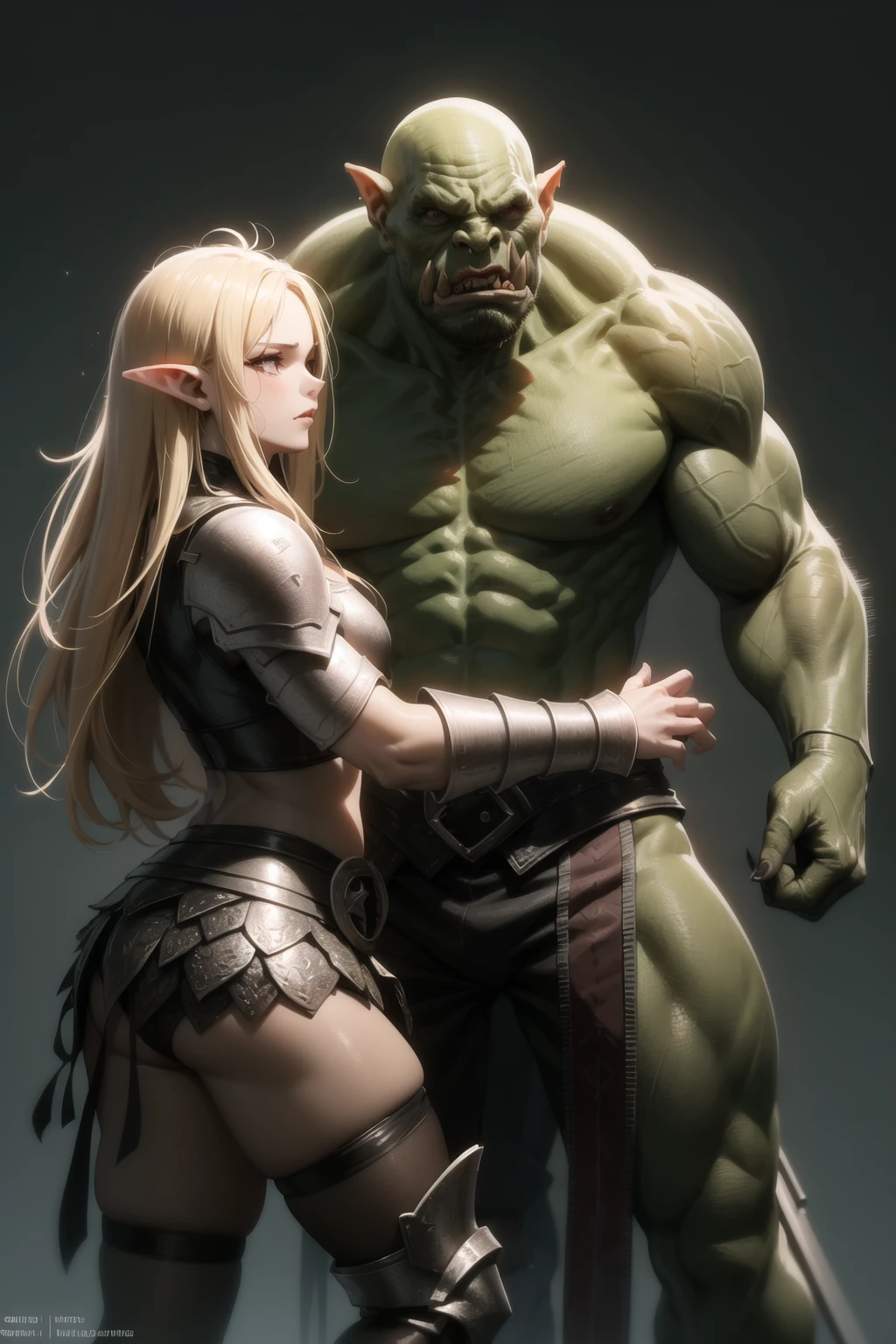 • Other tags that you can use to modify or amplify the effect: orc, monster, green skin, muscular, size difference, height difference, tusks, glowing eyes, fat, fat man, horror \(theme\), manly, etc. See my example images.