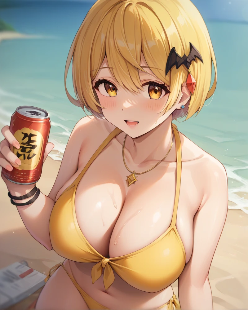 yozora_mel, blonde_hair, large breasts, hair ornament, gloves, navel,