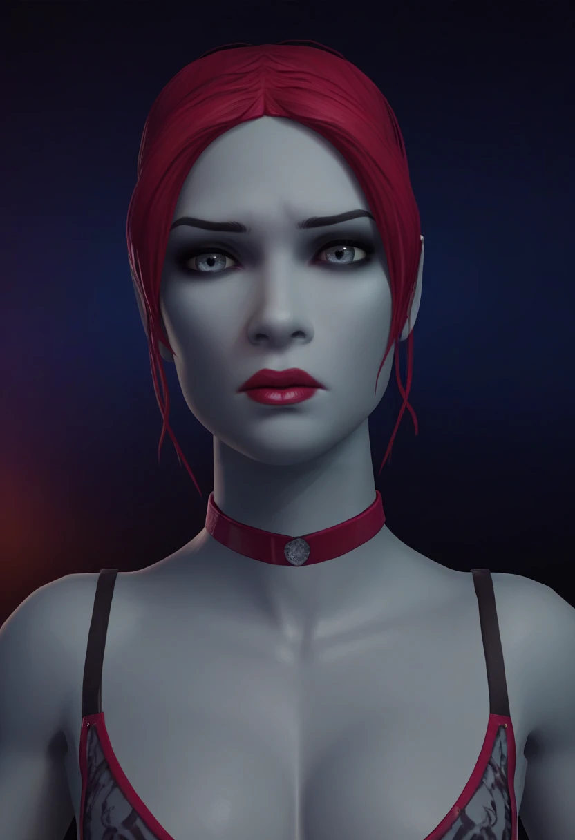 Use 3d, and/or render to make her look more like she does in the game. Use fangs if you like but you may need it on a lower strength to not get big ???? teeth, such as (fangs:0.6).
