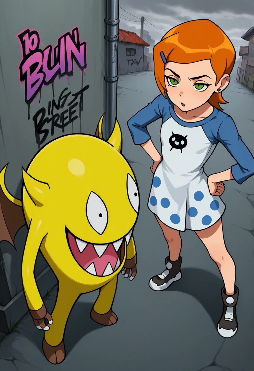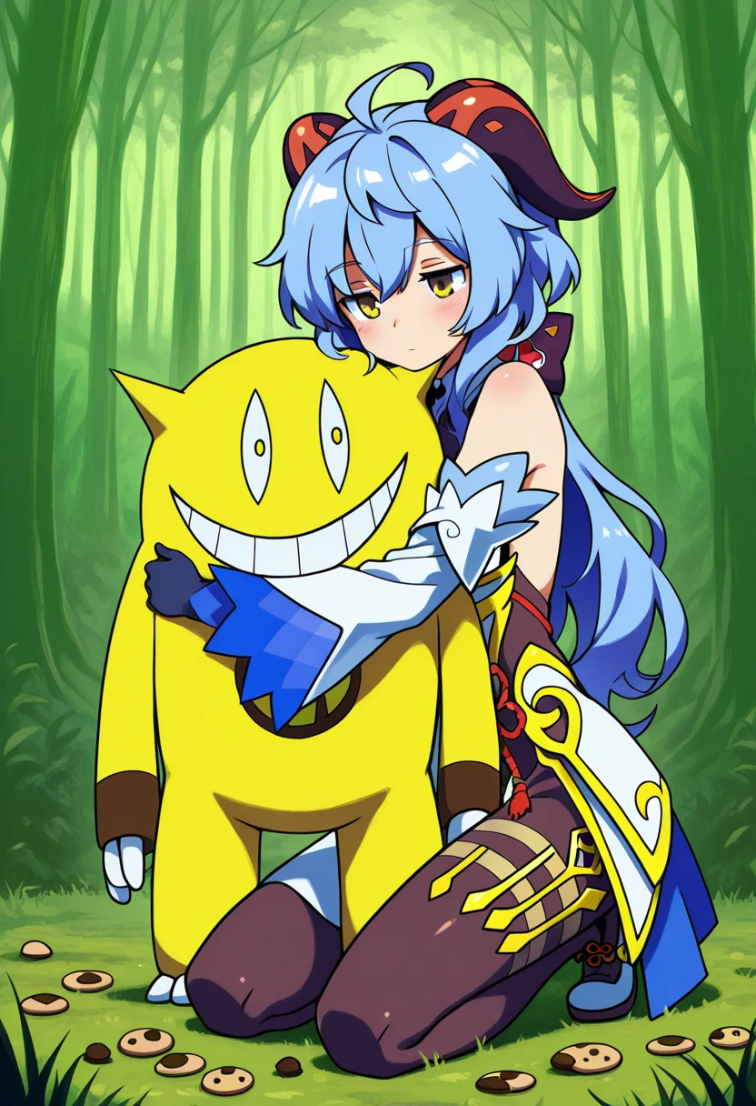 This is what Babo looks like in the anime. He has a yellow, elongated body, his arms ending in brown cylinders with white manipulator fingers extending from them. His legs end in brown cylinders that flare out slightly at the bottom. On his is a blue hexagon reminiscent of a sheriff's star. He always has a smile on his face and yellow eyes. In a battle scene, it was shown that he can develop additional arms. What immediately catches my eye is that LoRA draws toes on his feet that shouldn't be there. This is because the "pokemon (creature)" tag was used for training, and the model uses their paws with claws as a basis for Babo's feet. I tried training LoRA without the "pokemon (creature)" tag, but this made Babo look worse in scenes with other characters. Another training session with the "1boy" tag also had Babo's default nose ^O^. I don't know how to draw Babo's feet correctly in this version. Sometimes it helps to add the "claws" tag to negative prompts, sometimes putting on some kind of shoes, sometimes very rarely the legs are drawn correctly. The only guaranteed way to avoid drawing the lower leg at all is to use the "cowboy shot" and "upper body" tags.