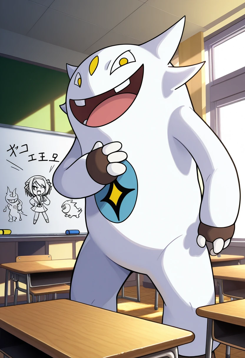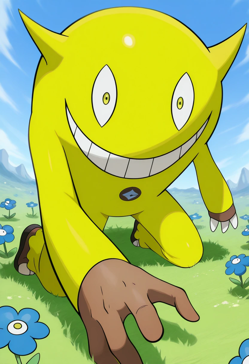 no tail, big pokemon (creature), grin, yellow skinNotes: