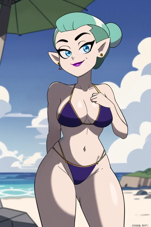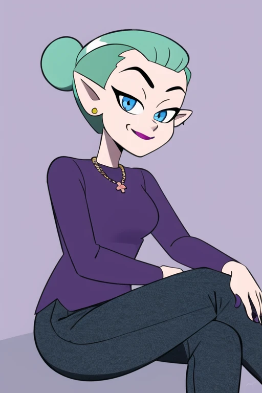1girl, solo, green hair, single hair bun, blue eyes, lipstick, pointy earsWould you like to have a model of a character, object, or concept? Contact me; I can assist you