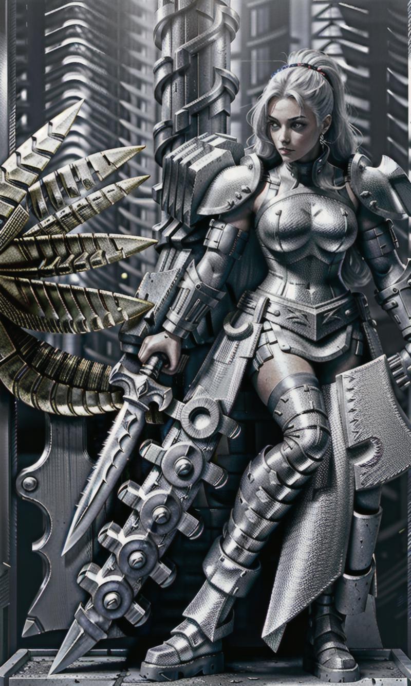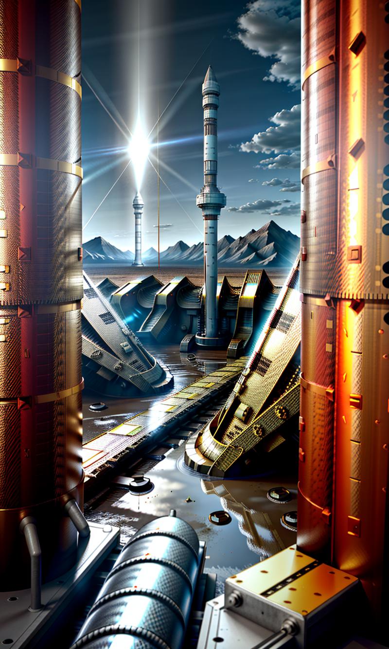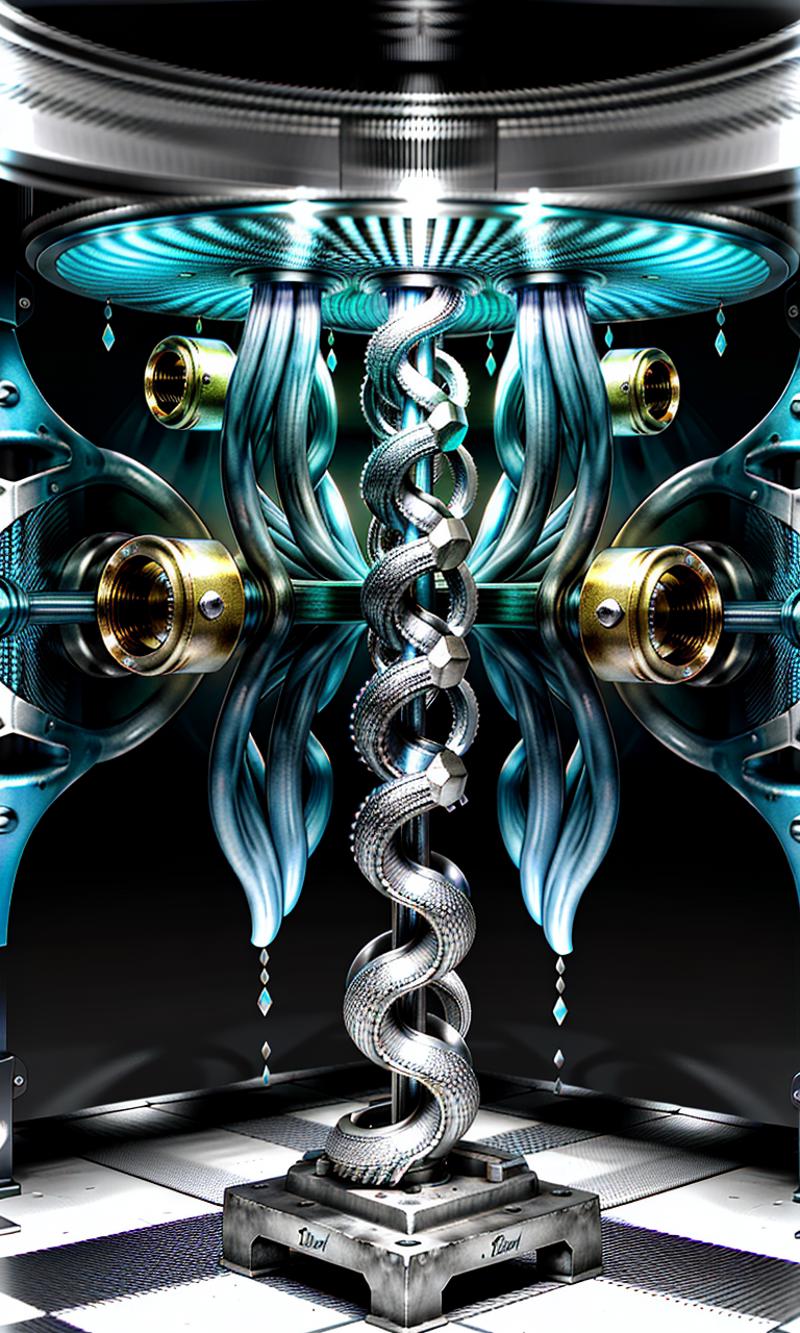 The main trigger word is industrial, and you can bolster your prompt with nuts, bolts, chains, bearings, valves, pipes, and gears. The model also knows about brushed or polished metals.
