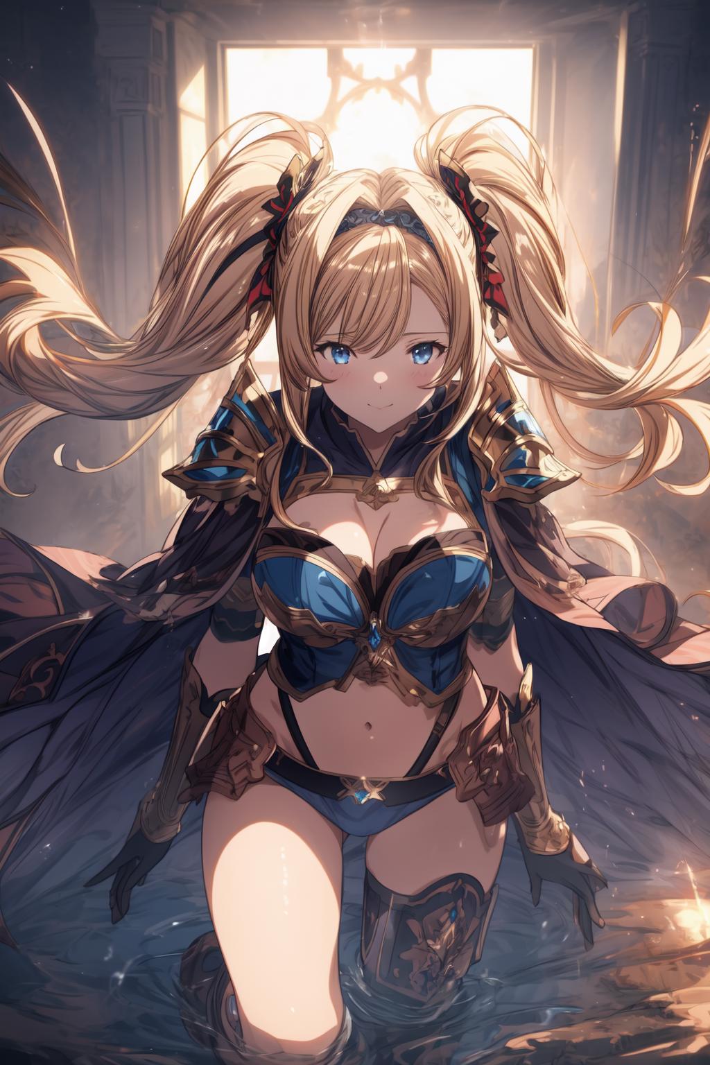 blonde hair, twintails, blue eyes, black hairband
