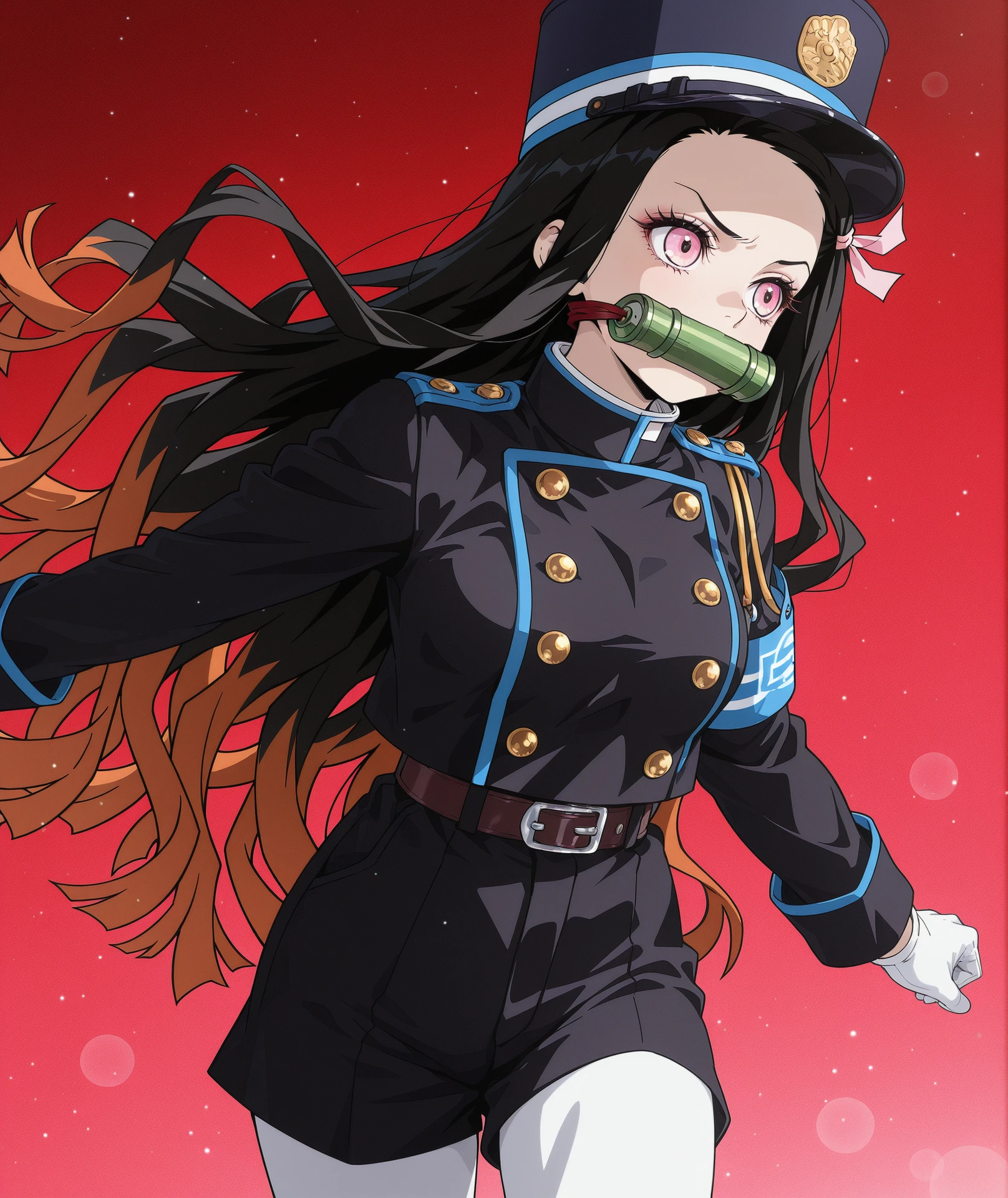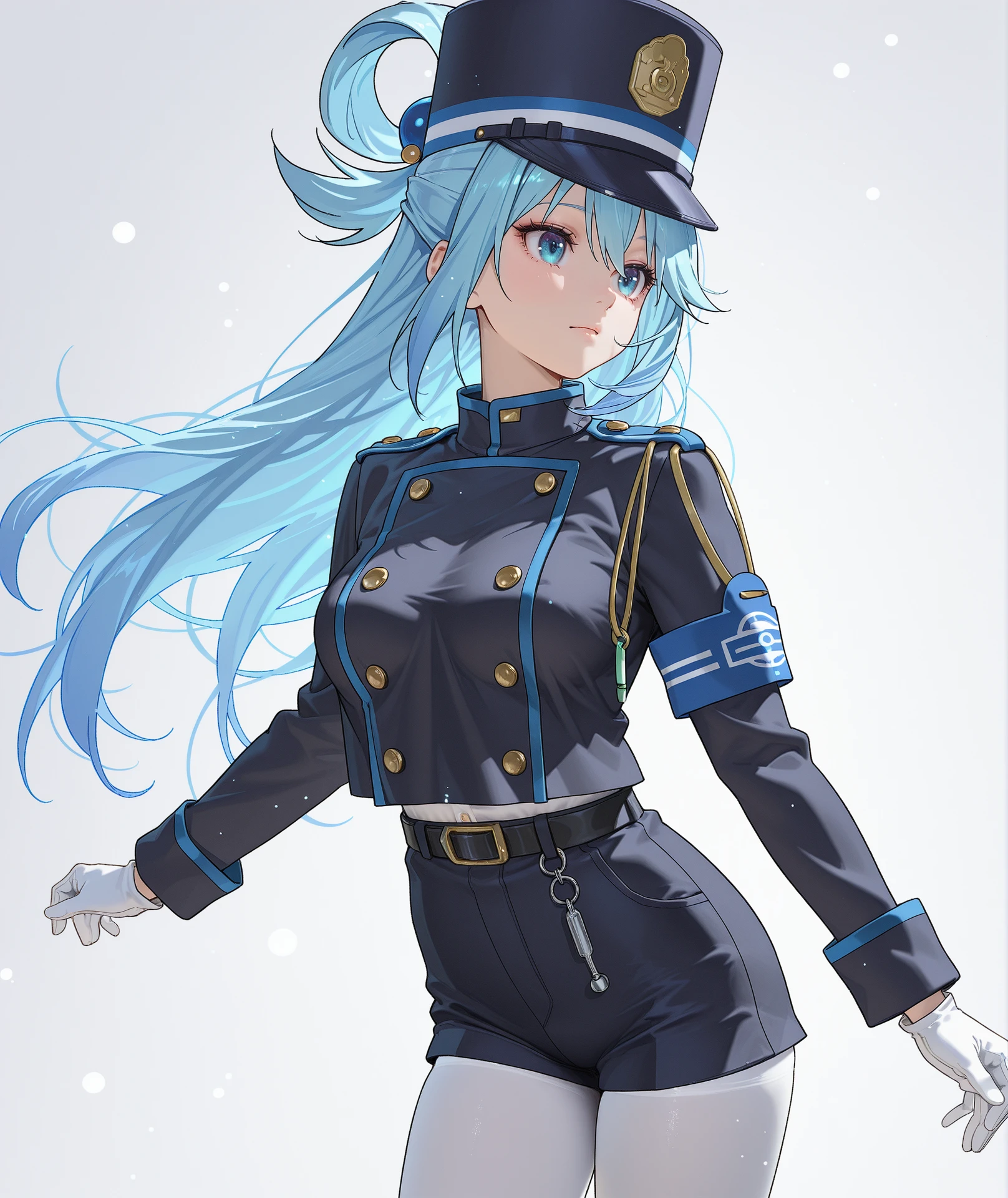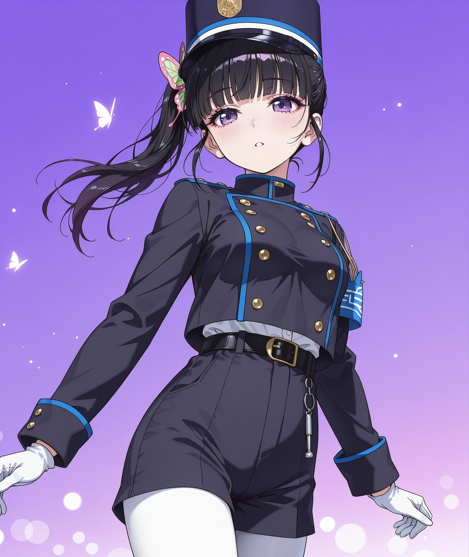 long sleeves, gloves, jacket, white gloves, double-breasted, black jacket, uniform, buttons, armband,