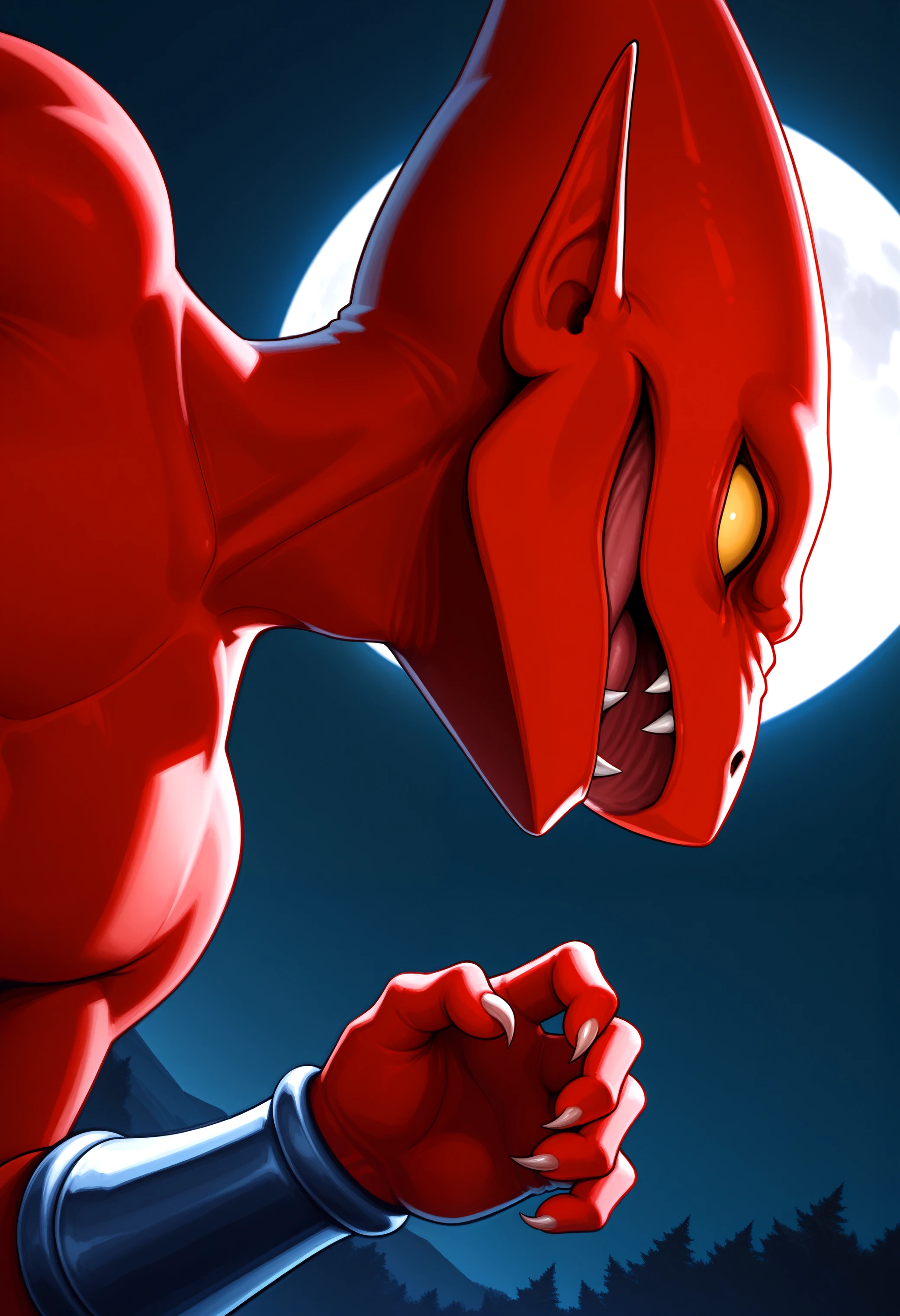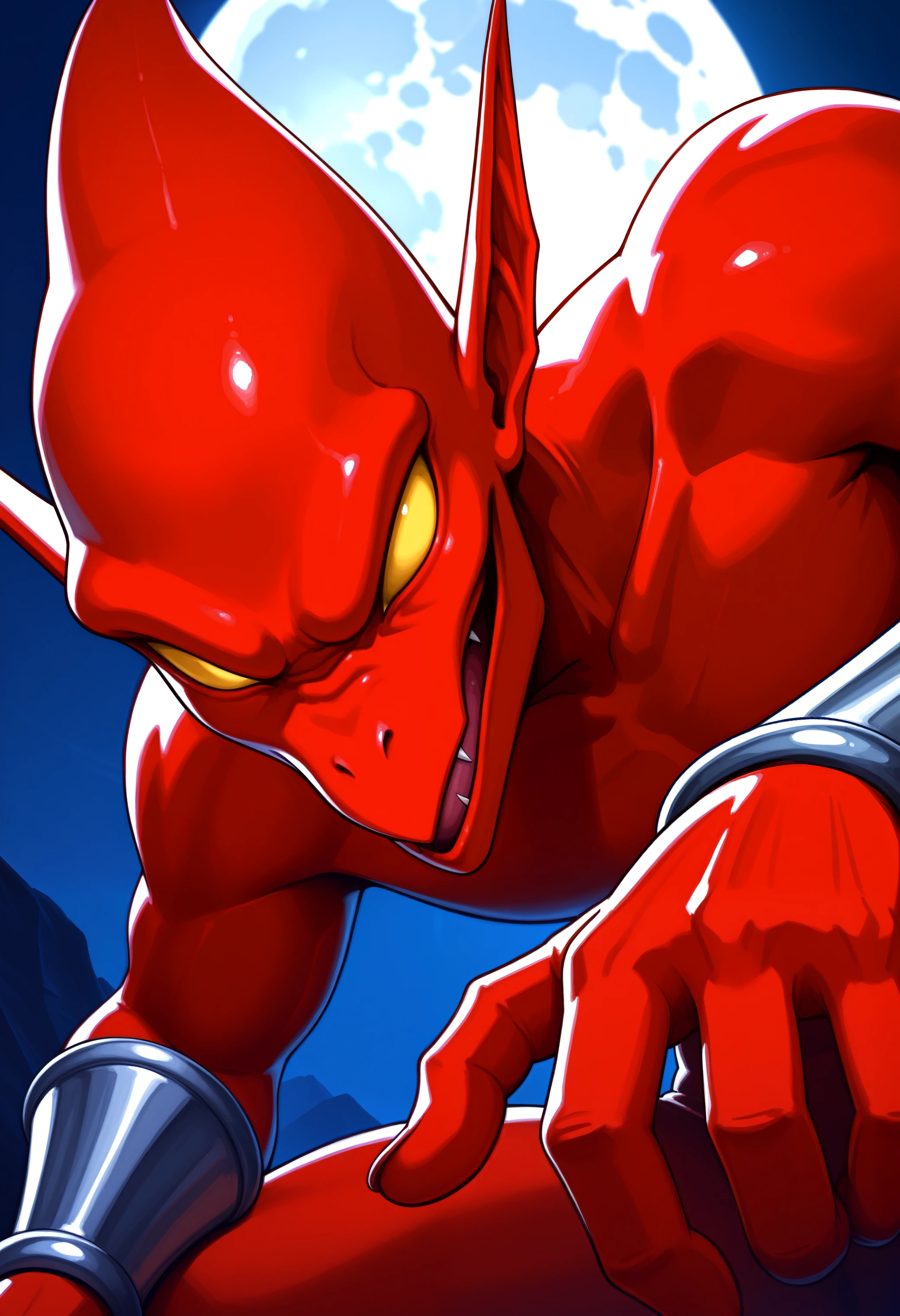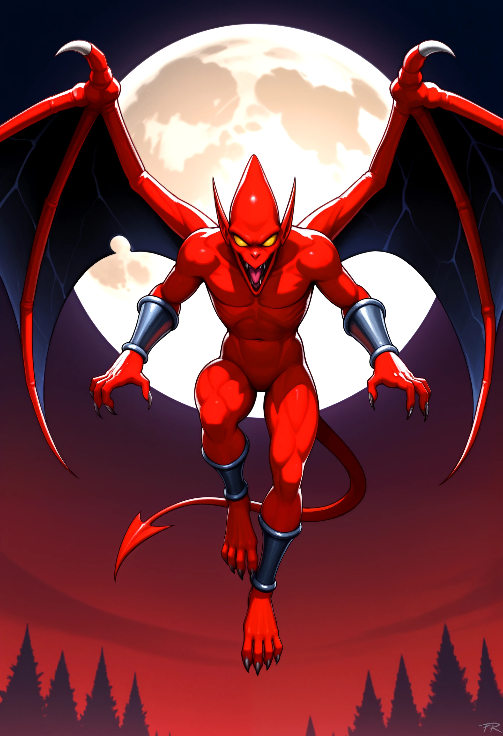 f1r3br4nd, demon wings, vambraces, red skin, no pupils, yellow sclera,