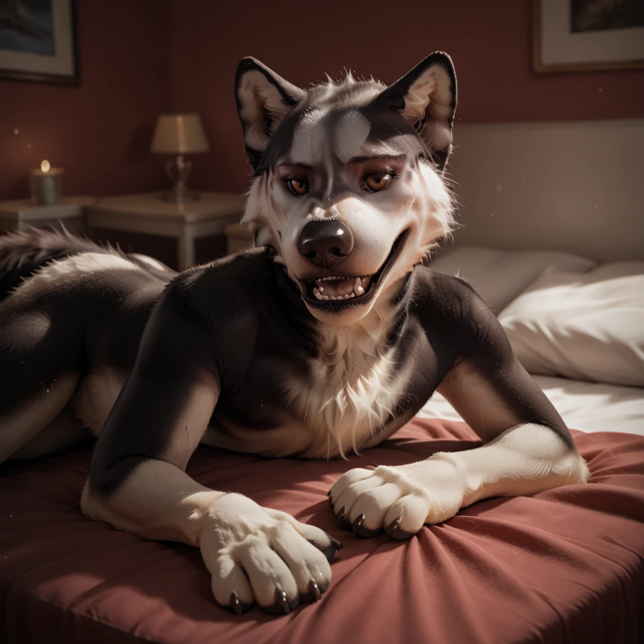 Trigger words: verbeger, wolf, furry, anthro, male, canine, brown fur, white underbelly, black nose, black lips, brown eyes,