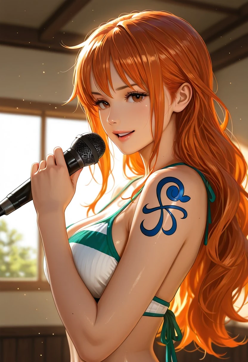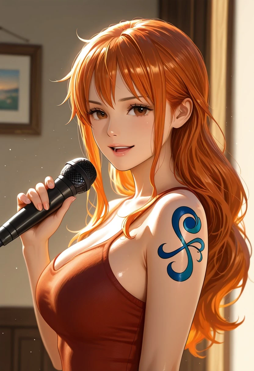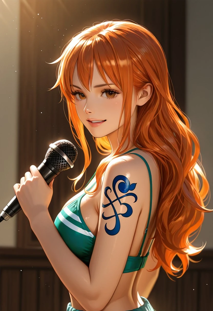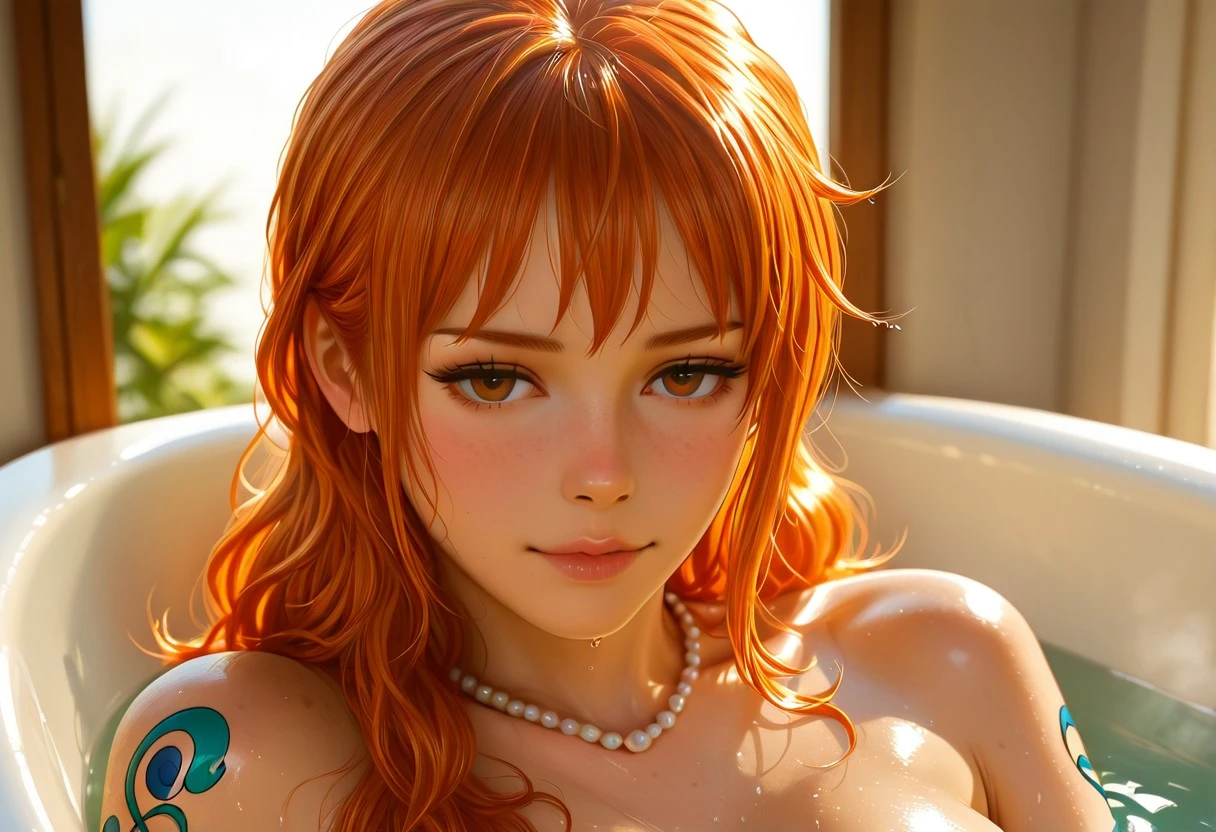 Esta es una LoRA de Nami de One Piece en estilo realista y detallado, enfocada en su rostro hermoso, ojos expresivos, cabello naranja largo y ondulado, piel clara con pecas suaves, y su famoso tatuaje azul en espiral en el hombro izquierdo. Entrenada con 42 imágenes de alta calidad para capturar su esencia seductora, natural y elegante. Ideal para retratos realistas, escenas de playa, bikini o looks casuales. El trigger principal es "nami one piece" o "nami realistic" + peso 0.7-0.9. Funciona mejor en IllustriusXL o bases realistas. ¡Disfruta creando tu Nami perfecta! ❤️