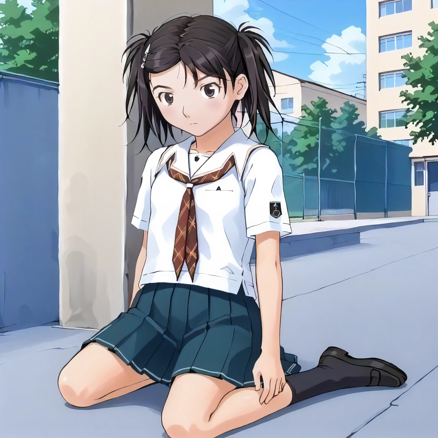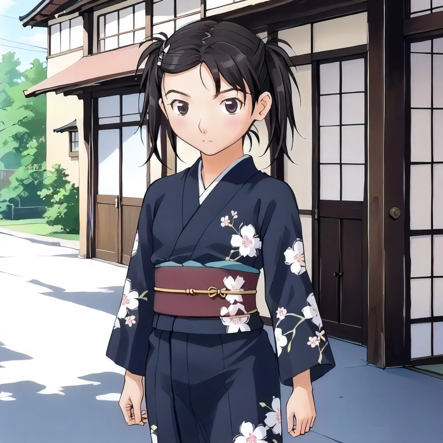 MegumiKuryu,1girl,black hair,hairclip,twintails,black eyes,