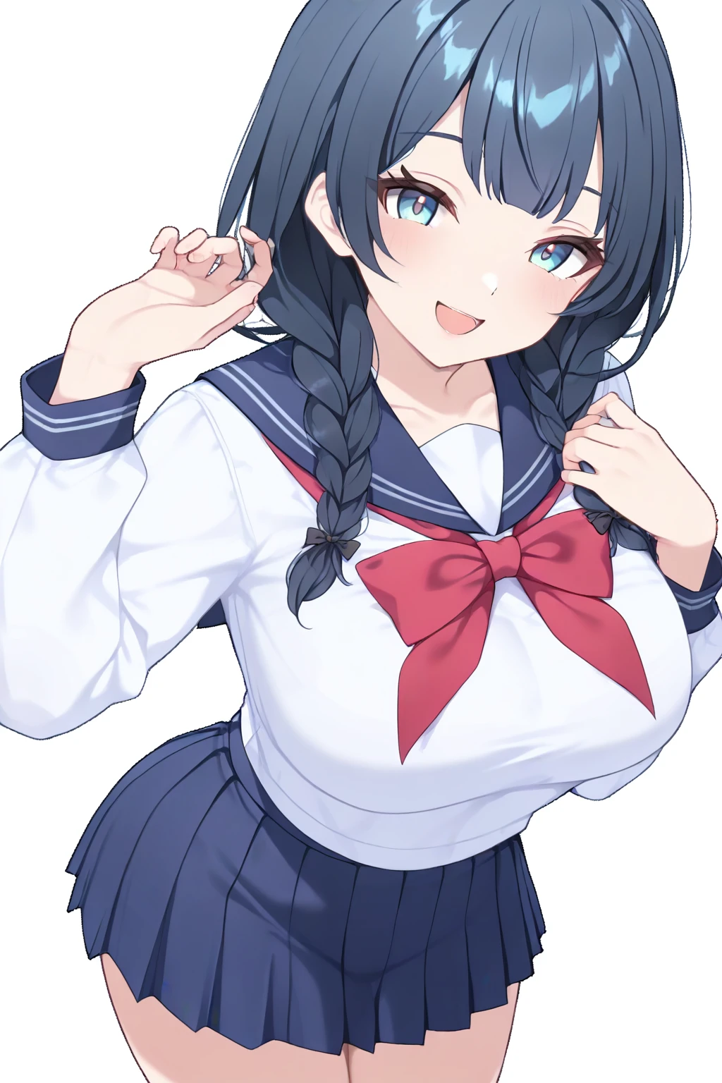 himari(NTR Island), 1girl, school uniform, ???????, skirt, twin braids, ?????????????, braid, serafuku, pleated skirt, blue eyes, blue skirt, sailor collar, long hair, blue hair, bangsRecommend preferred Strength: 0.8-0.9