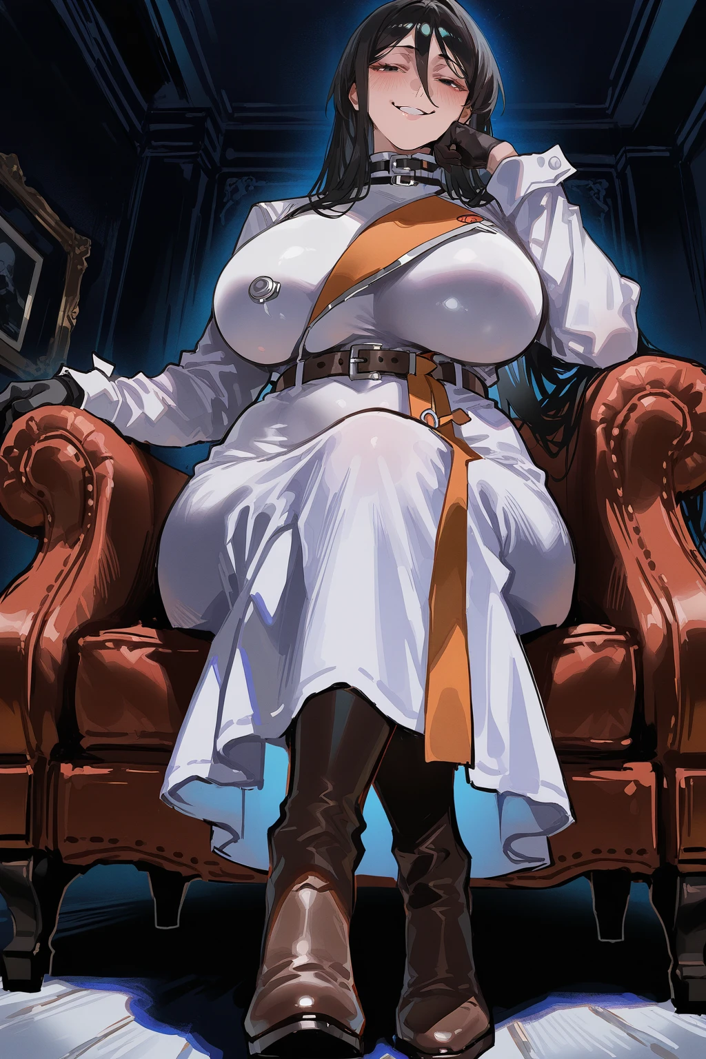 Trigger words: mrs, black hair, black eyes, squinting, long hair, hair between eyes, large breasts, curvy, wide hips, mature female.