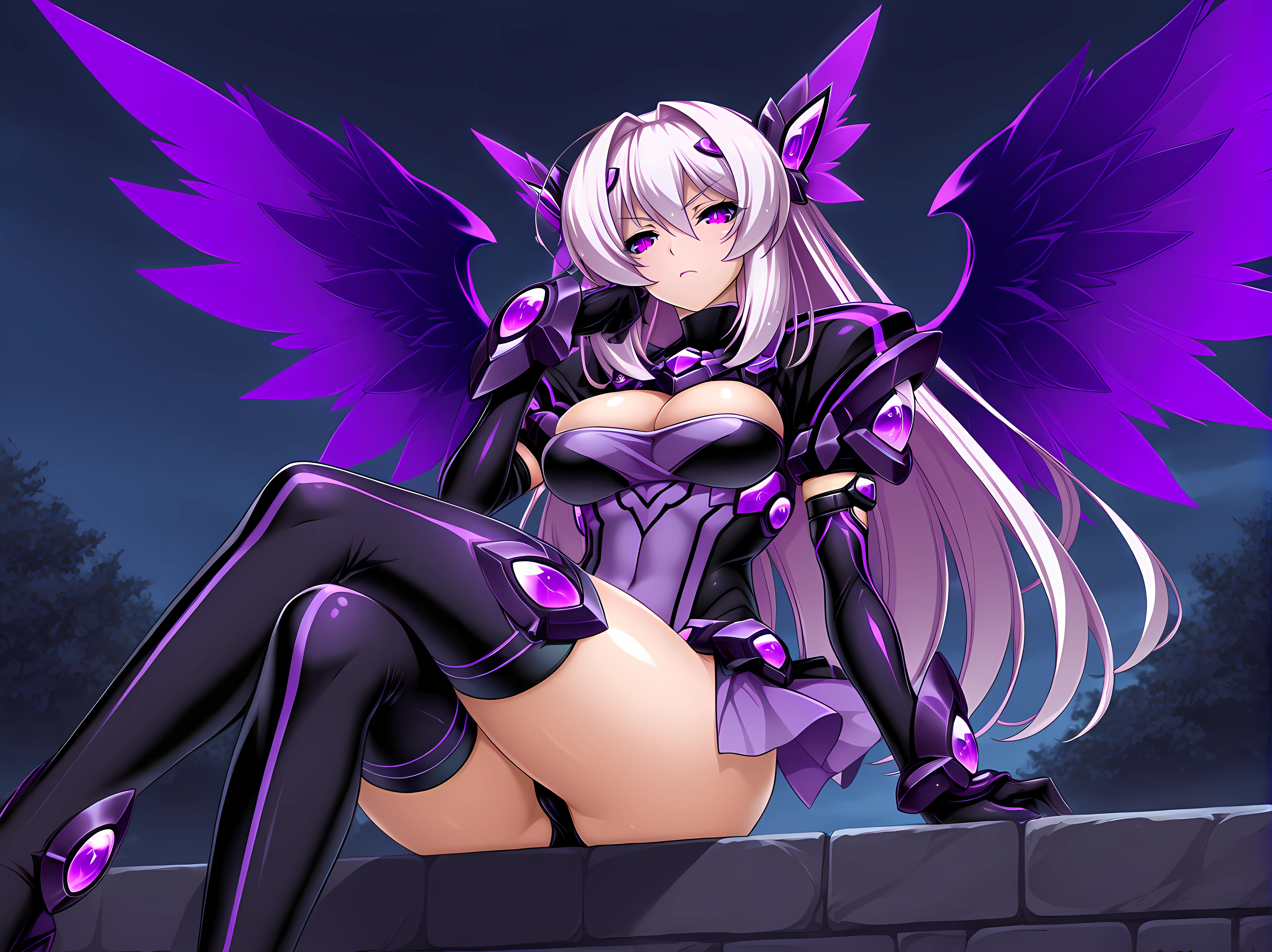 luxtia,purple eyes,very long hair,huge breasts,white horns,demon girl,pink hair,
