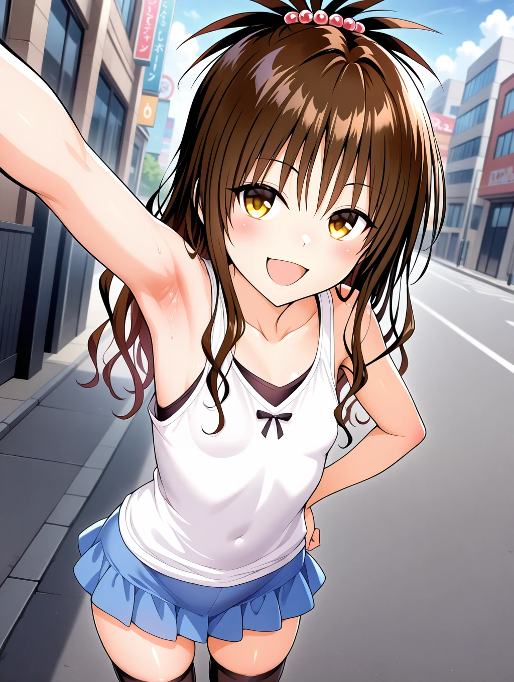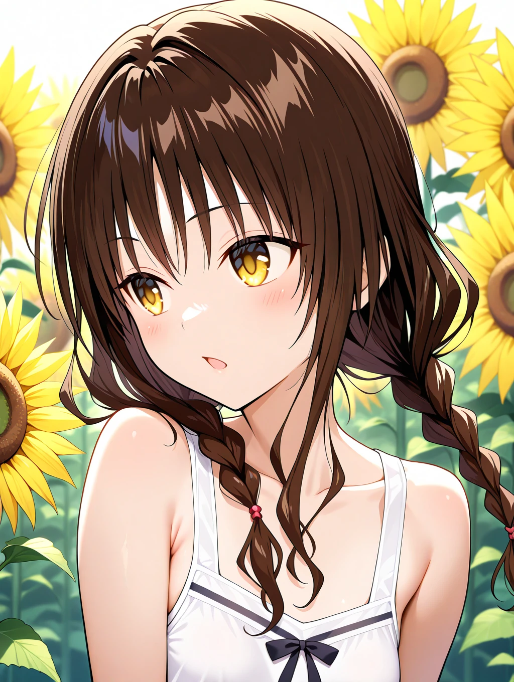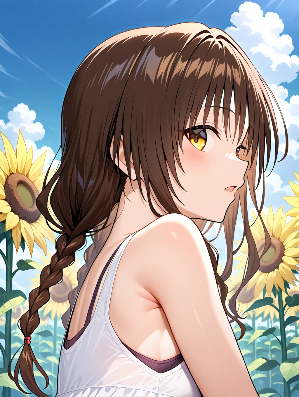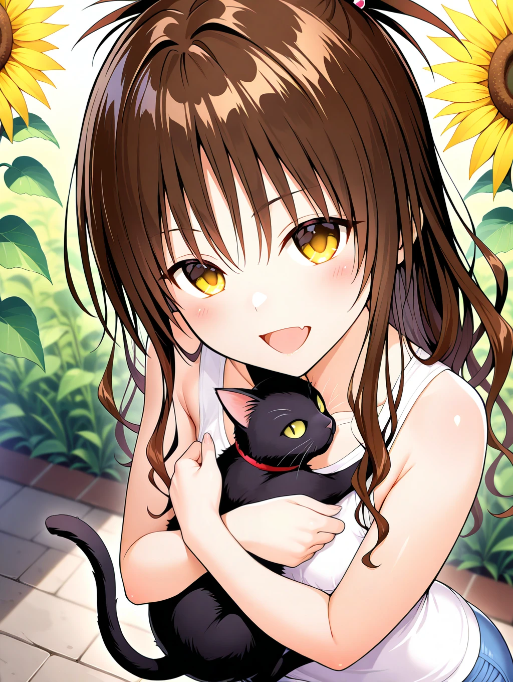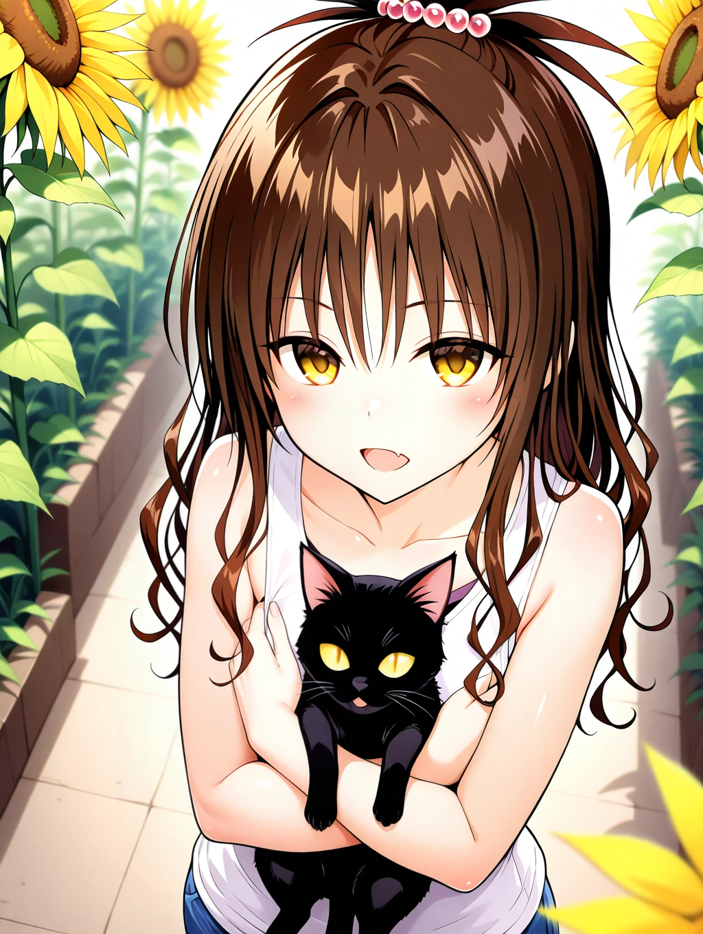 外見補助ワード・brown hair,long hair,yellow eyes,hair ornament,hair bobbles,