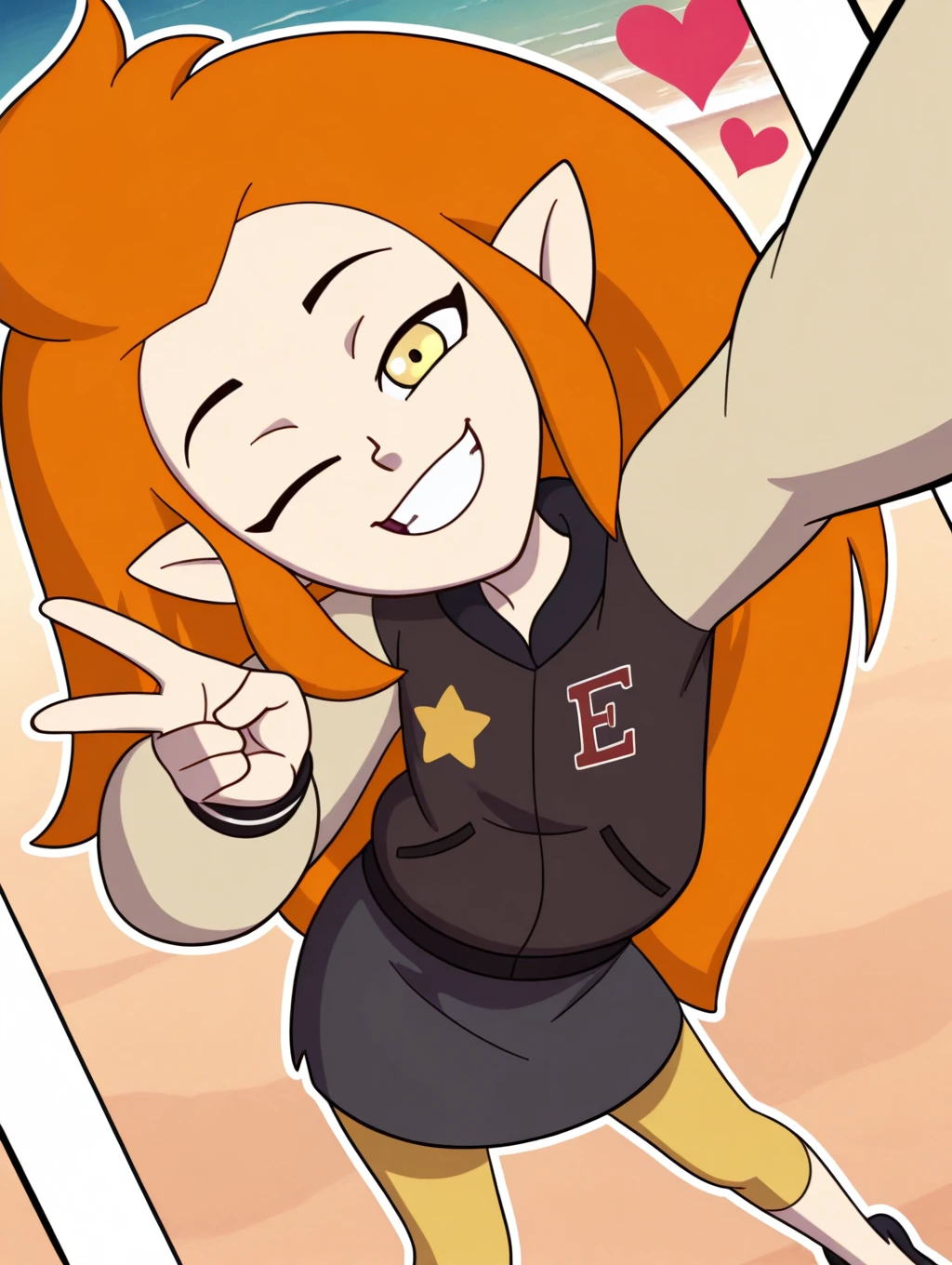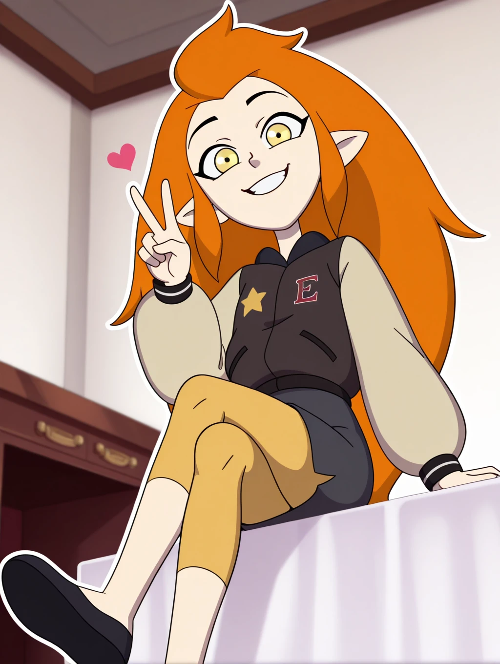 Recommend prompt: " yellow eyes, pointy ears, orange hair, long hair "