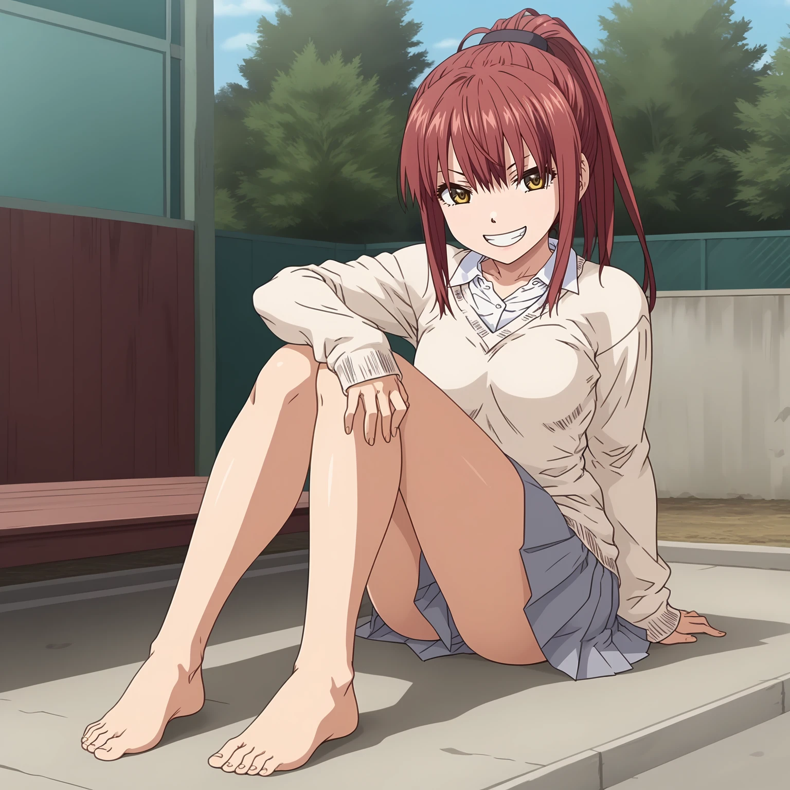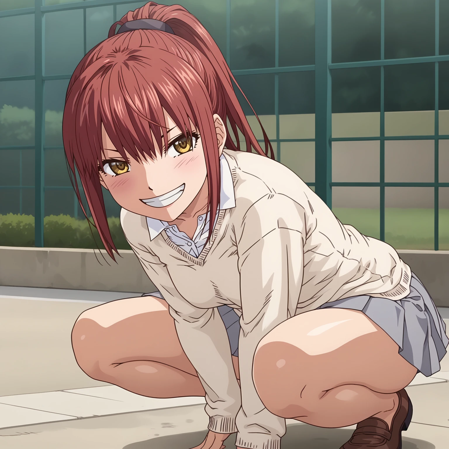 MichiyoHotori,1girl,red hair,ponytail,yellow eyes,