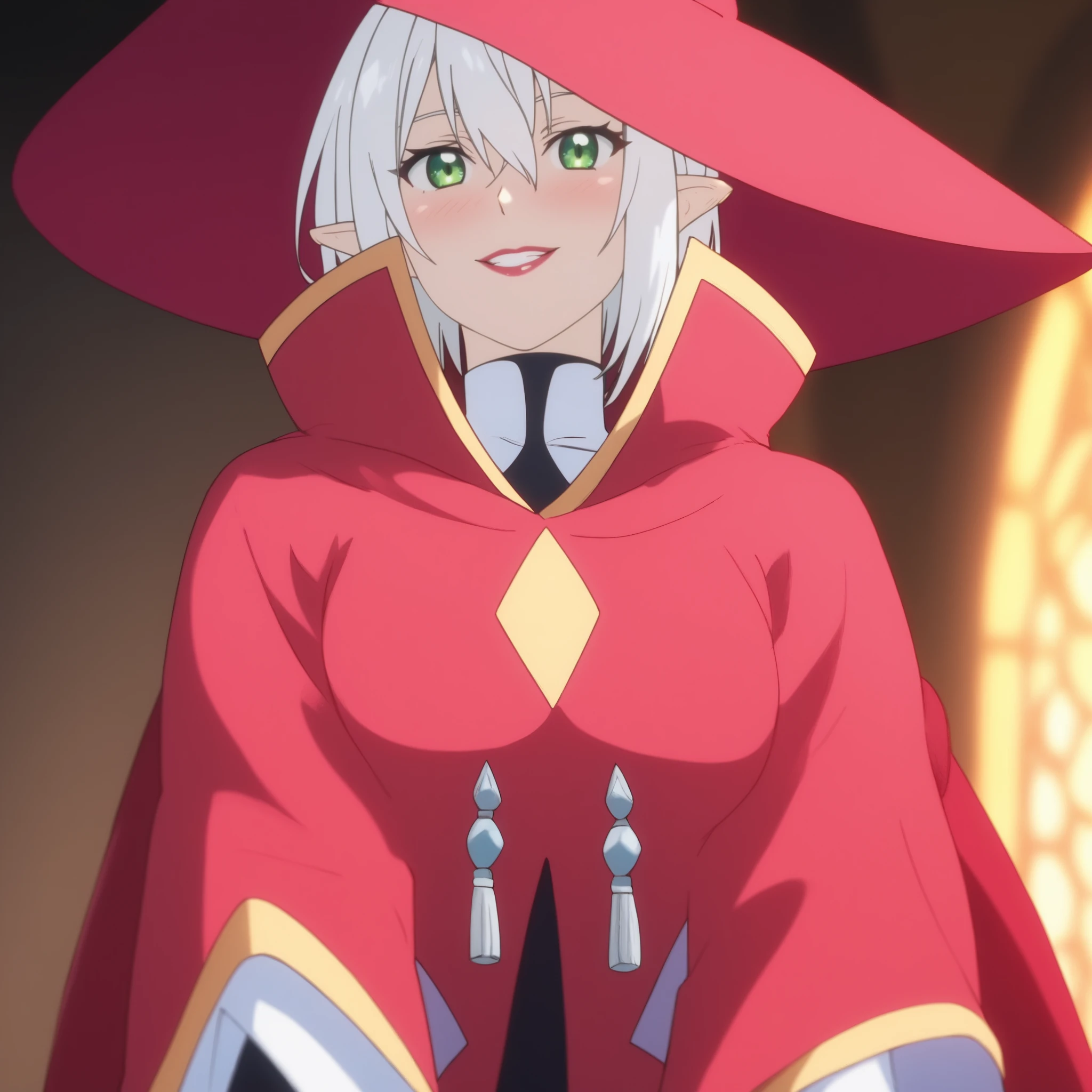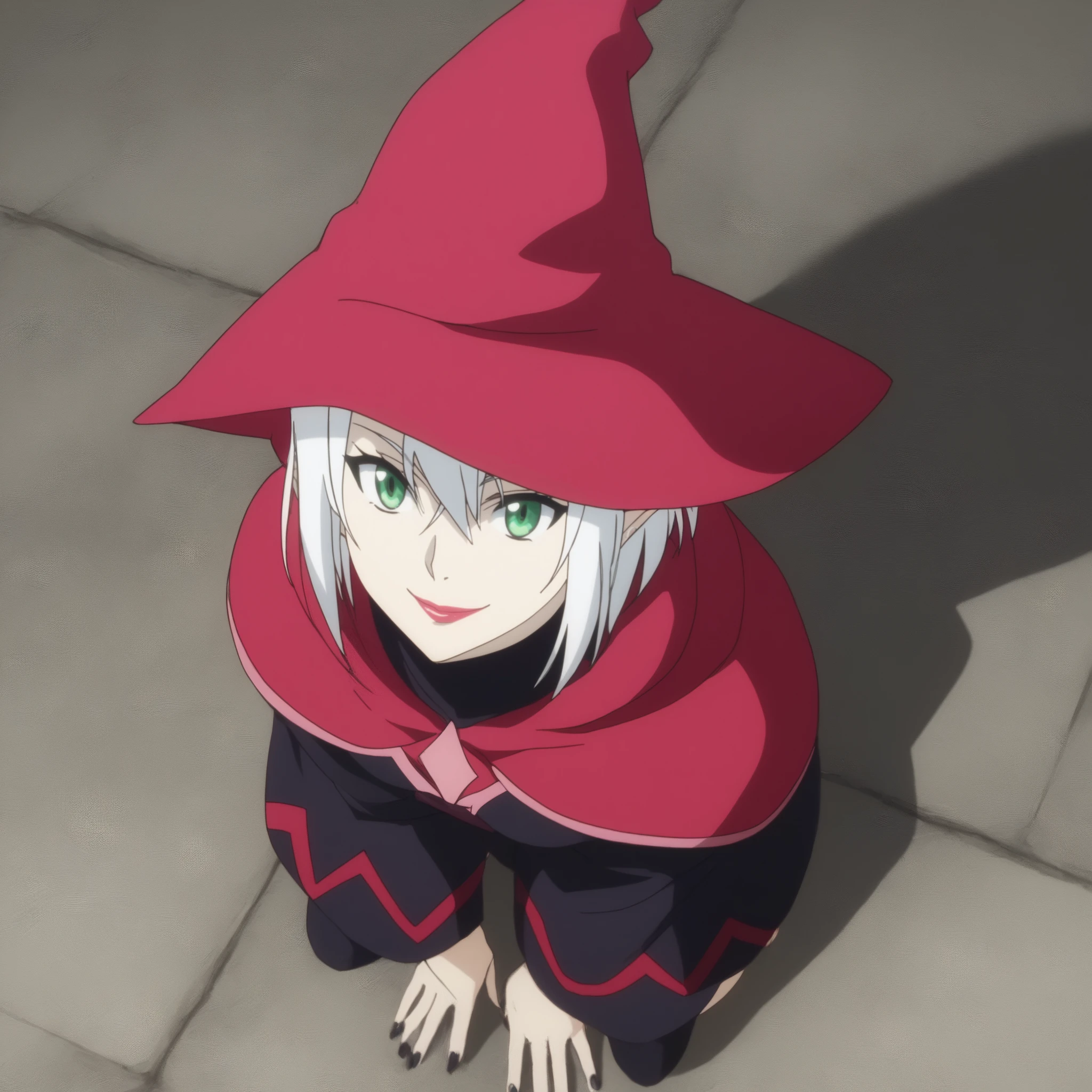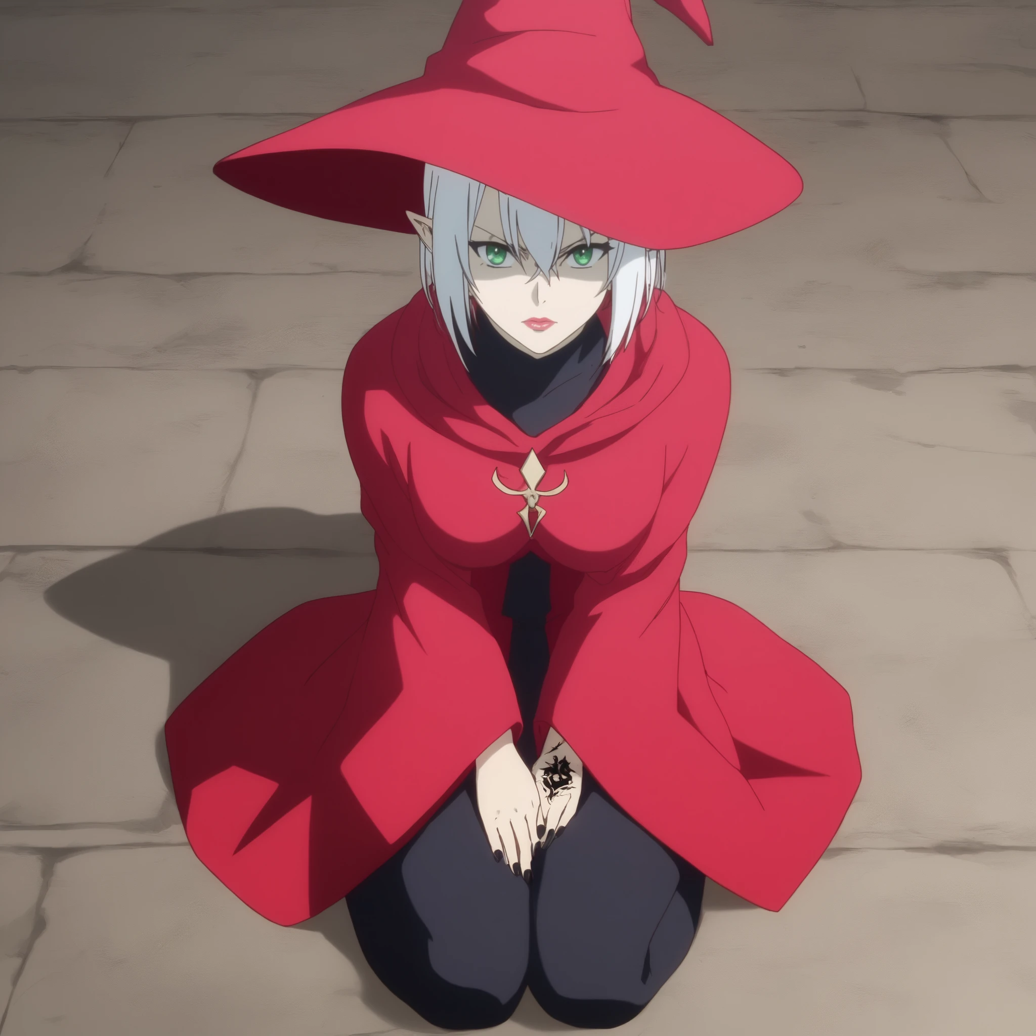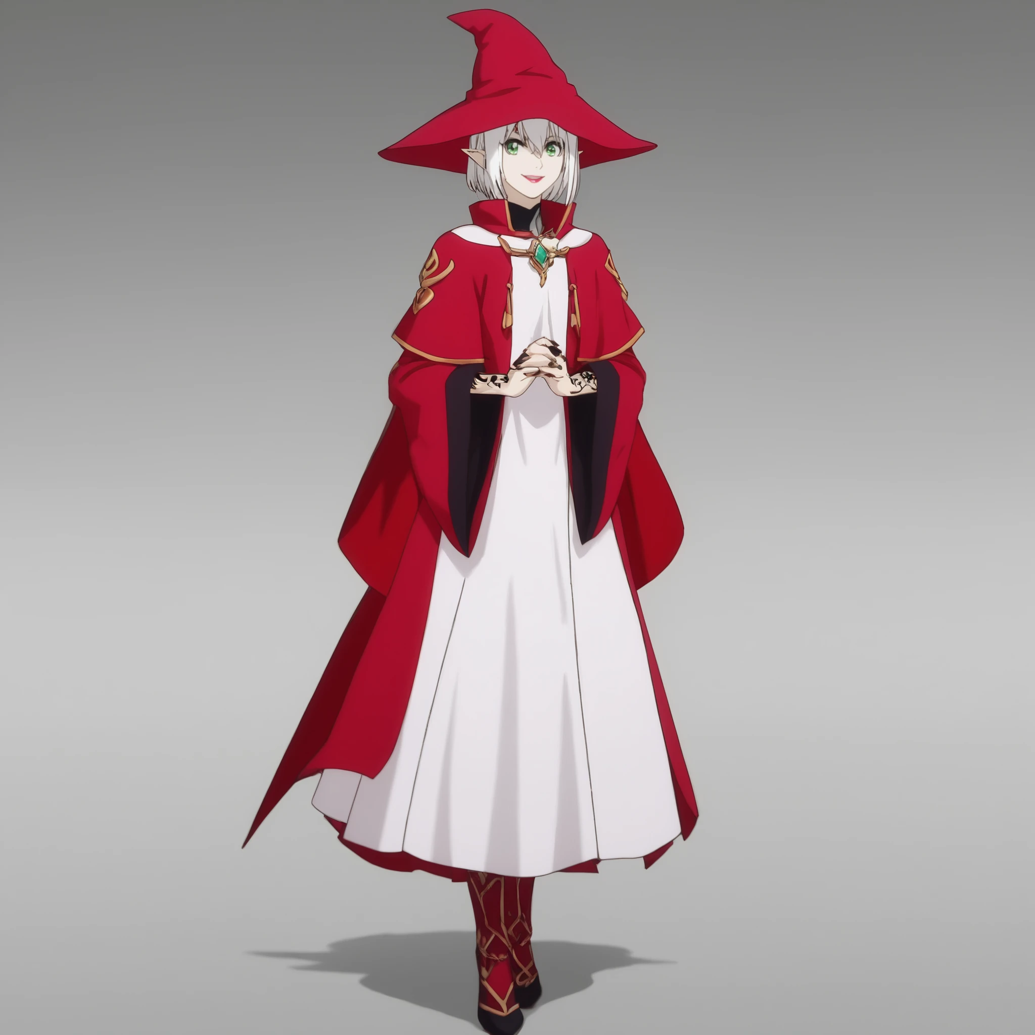 SeiSpellLord, short hair, witch, witch hat, red headwear, red capelet, red cloak, red robe, wide sleeves, long sleeves,
