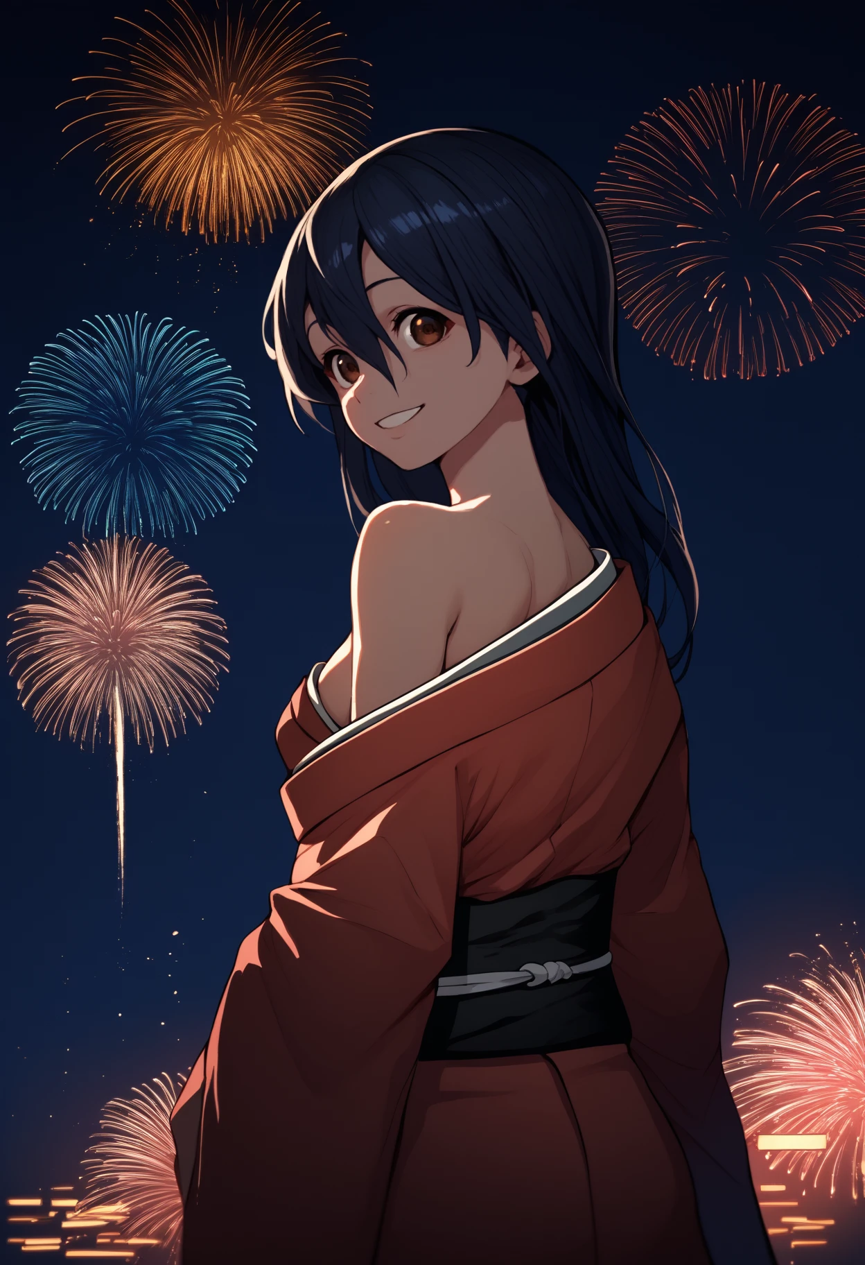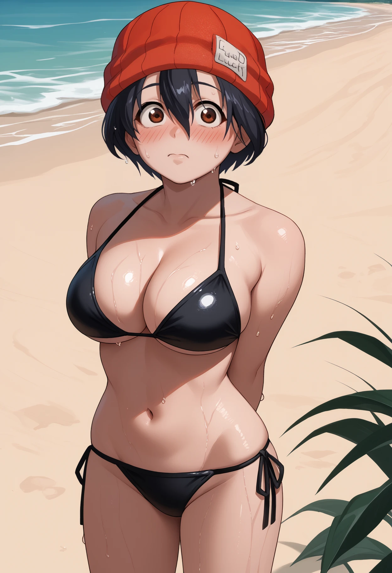Trigger + Appearance: izumo fuuko, short hair, black hair, hair between eyes, brown eyes, large breasts