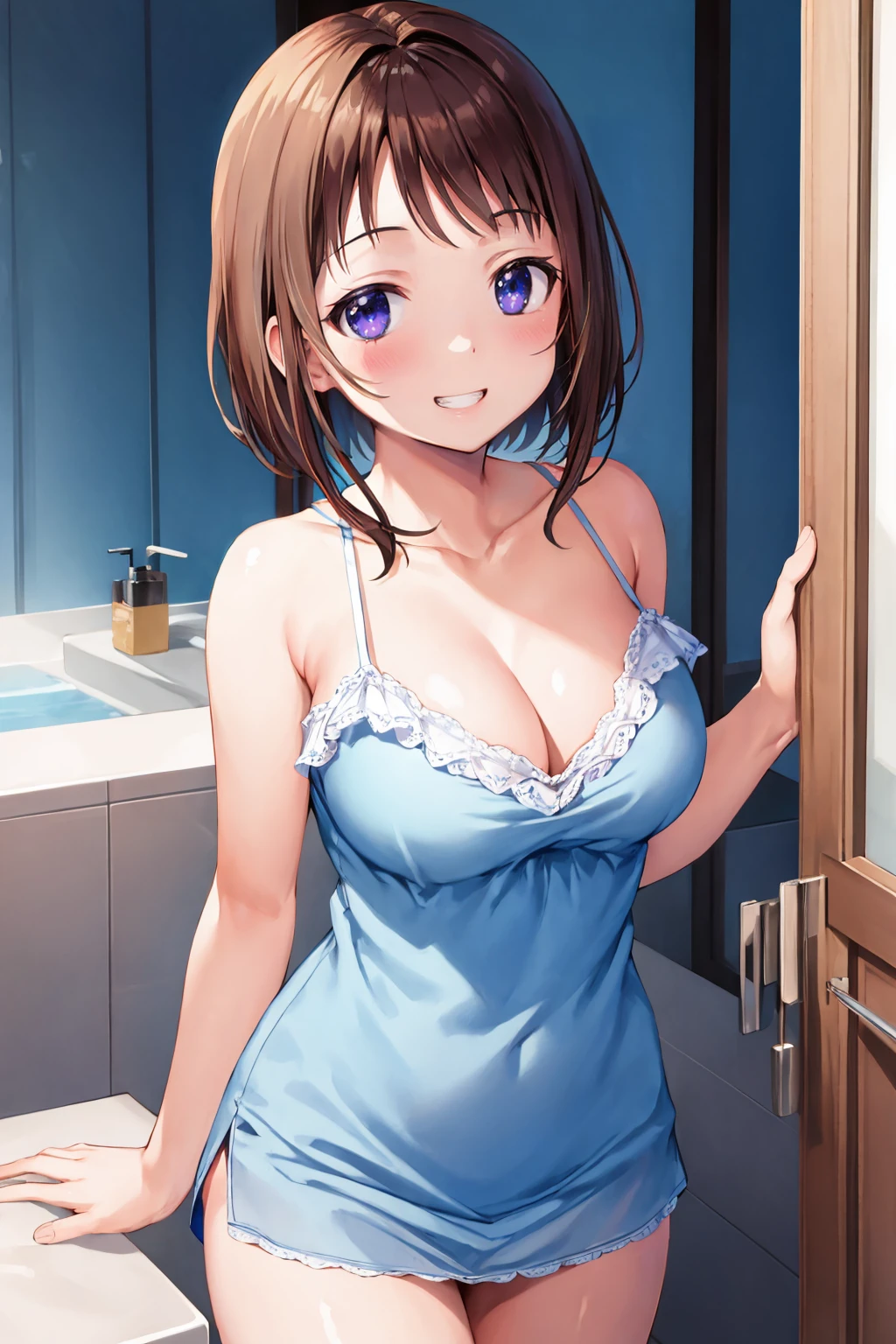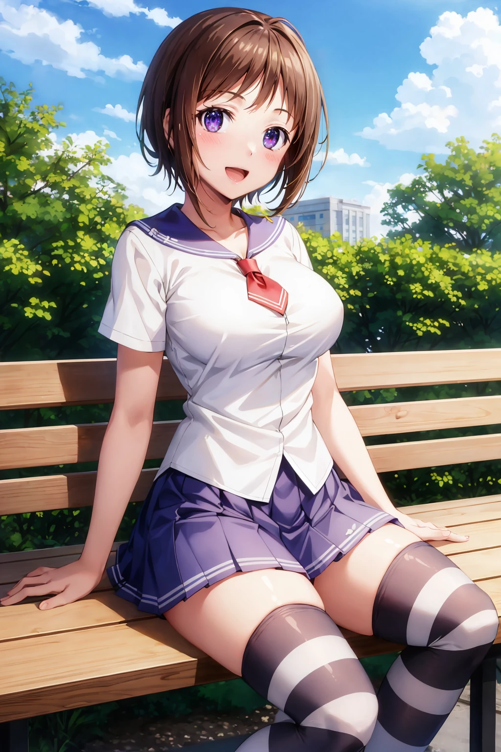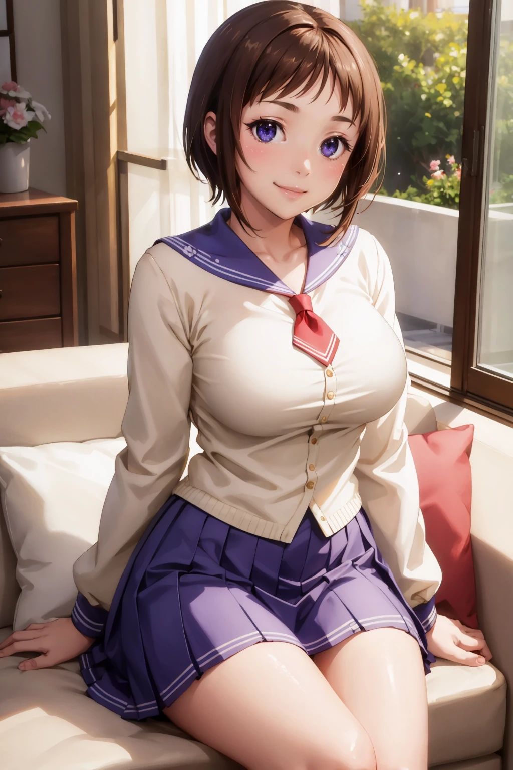 Add "serafuku, long sleeves, blue skirt, socks, loafers" for her typical look.