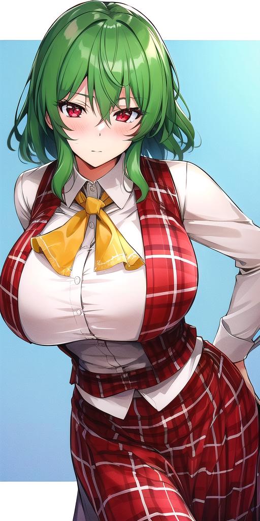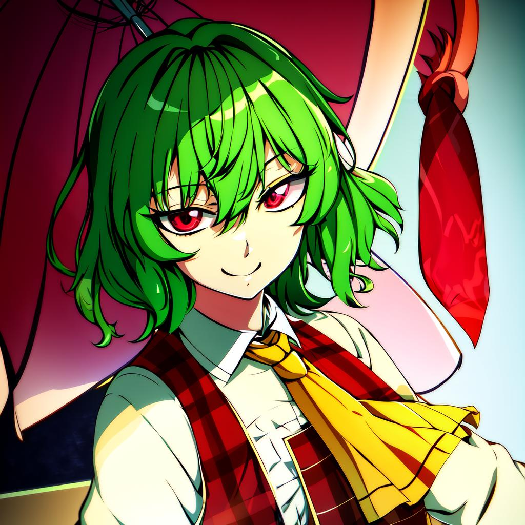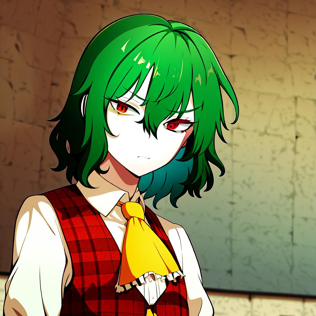 Regardless it works fine with: <lora:YuukaKazami:.7>, YuukaKazami, red_eyes, green_hair,