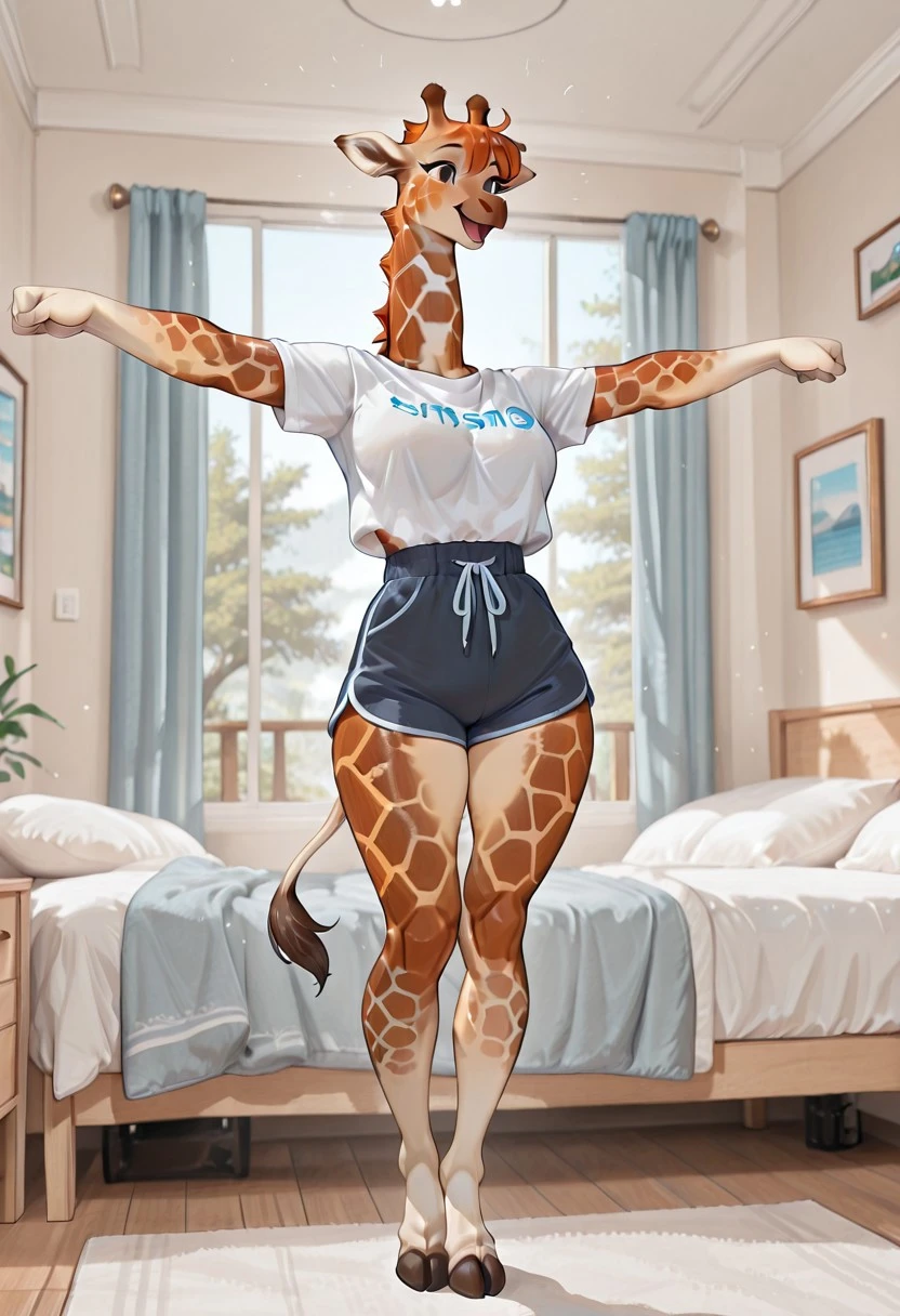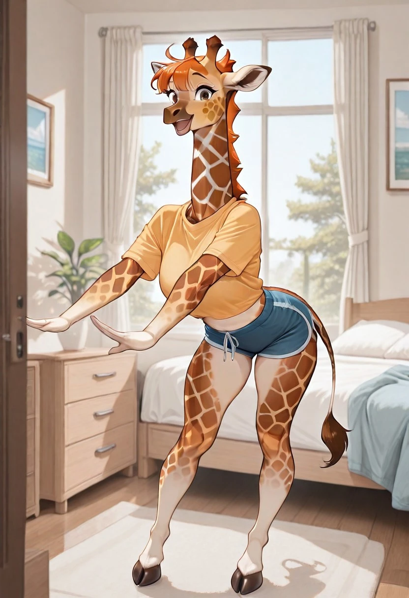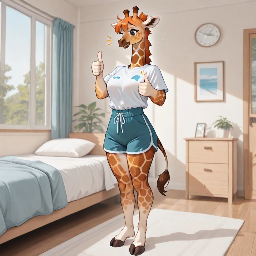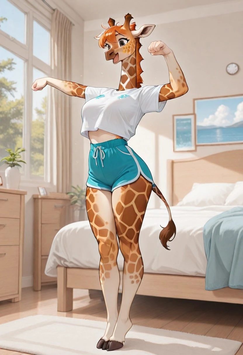 anthro giraffe, giraffe ears, two giraffe horns, giraffe tail, giraffe nose,