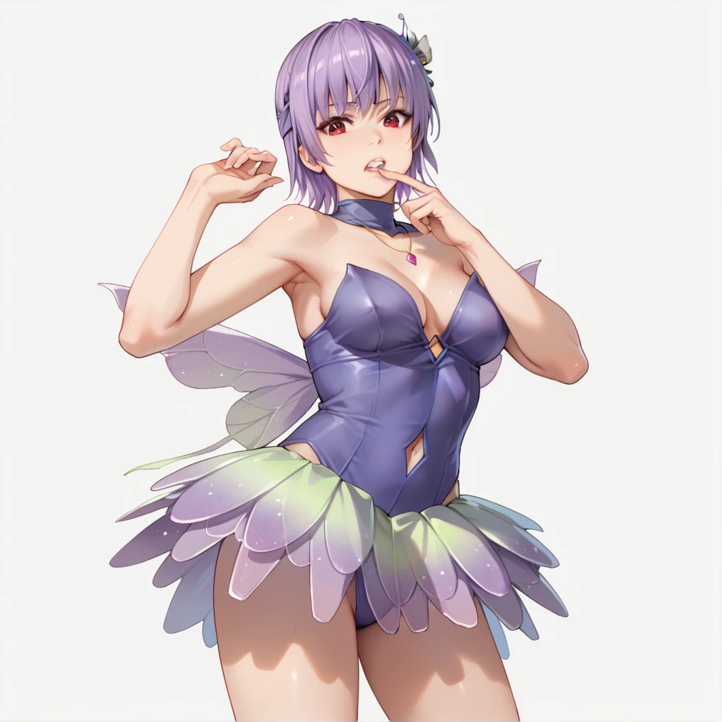 ayanefairy, wings, leotard under clothes, purple leotard, skirt,