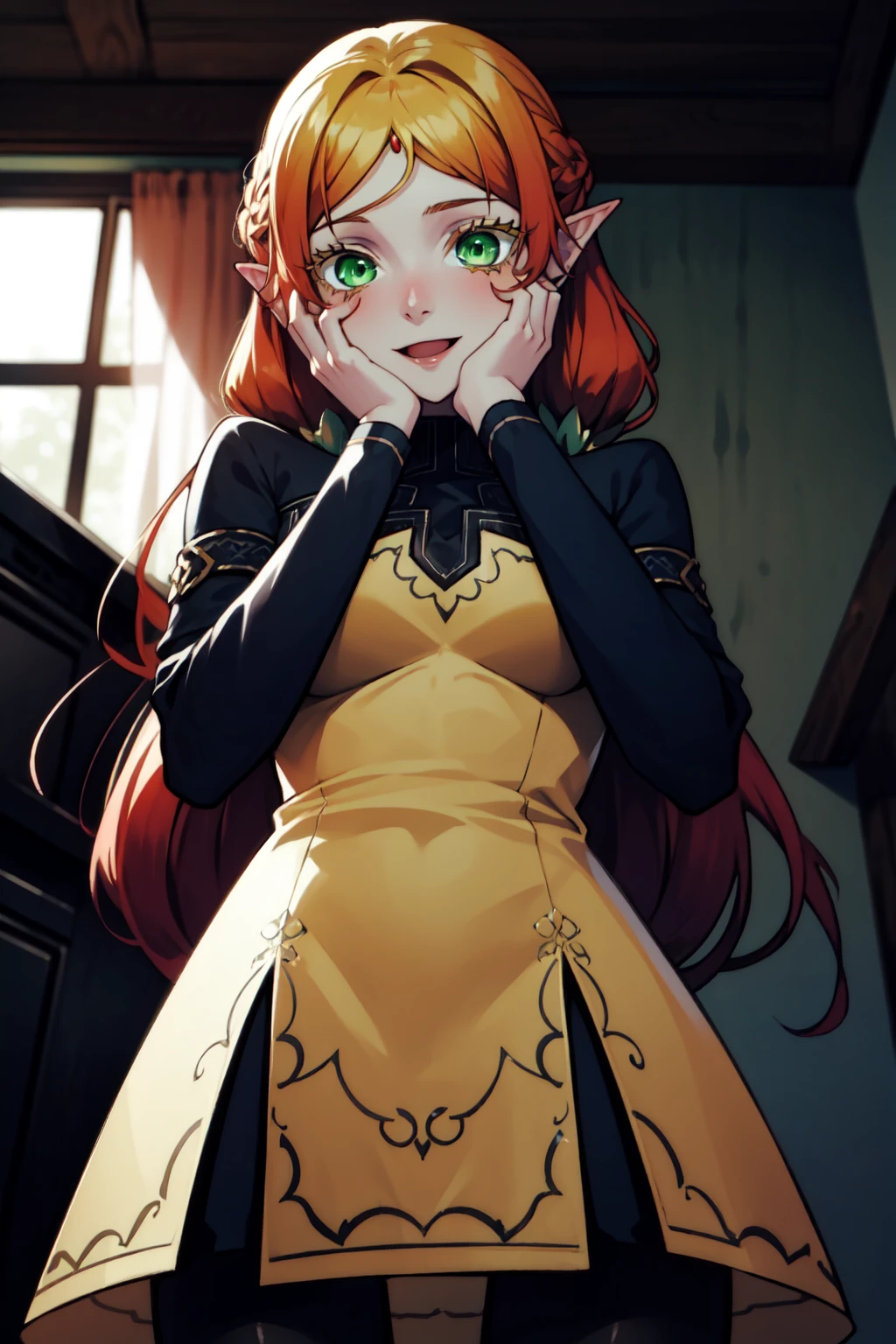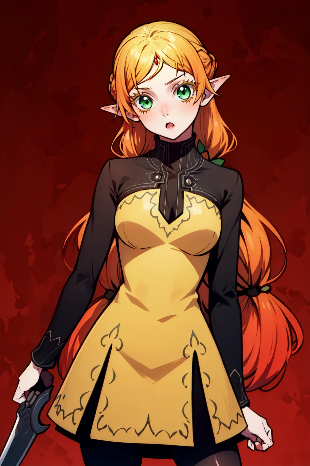 Default outfit: (suidefault:1.1), (yellow sleeveless dress:1.1), (black long sleeves:1.1), black pantyhose,