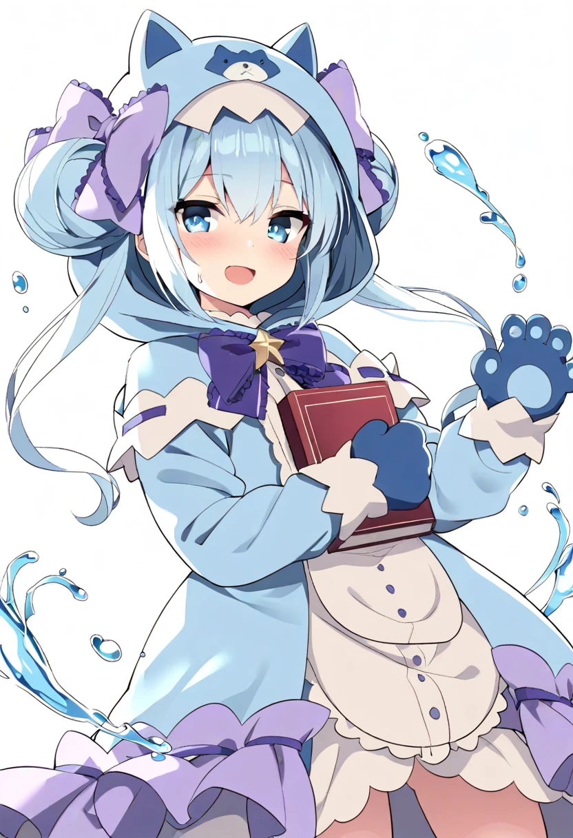 twintails, hoodie, paw gloves, kigurumi, animal costume, cat costume,blue dress,