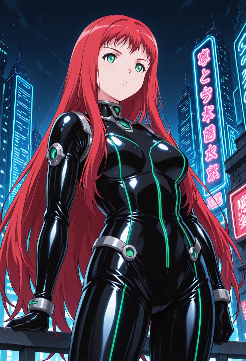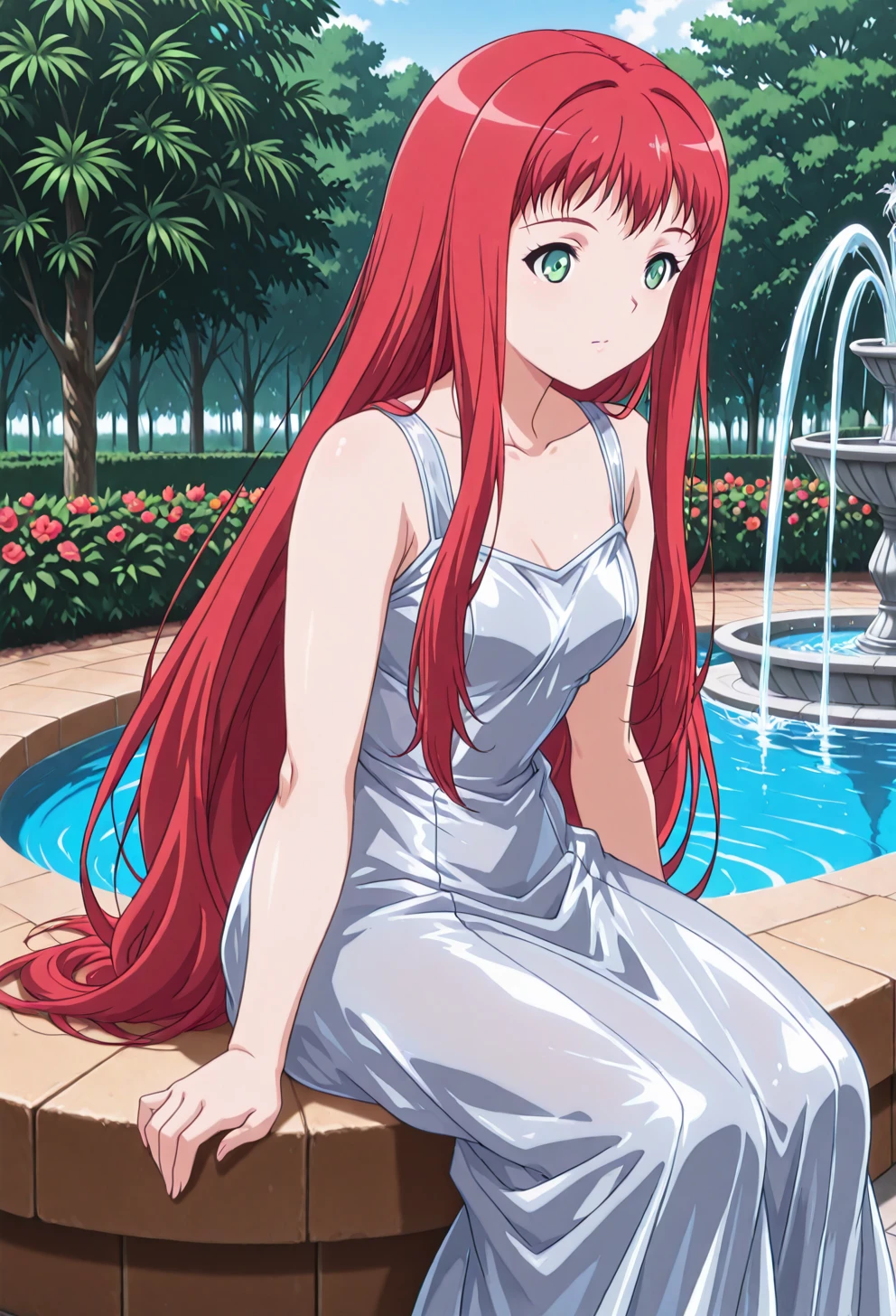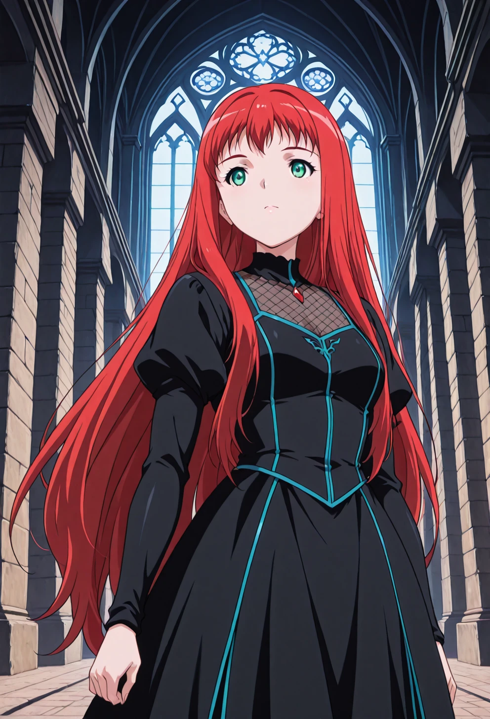 Trigger+CharTags: sysdeep_char22, 1girl, solo, long hair, very long hair, green eyes, red hair, straight hair