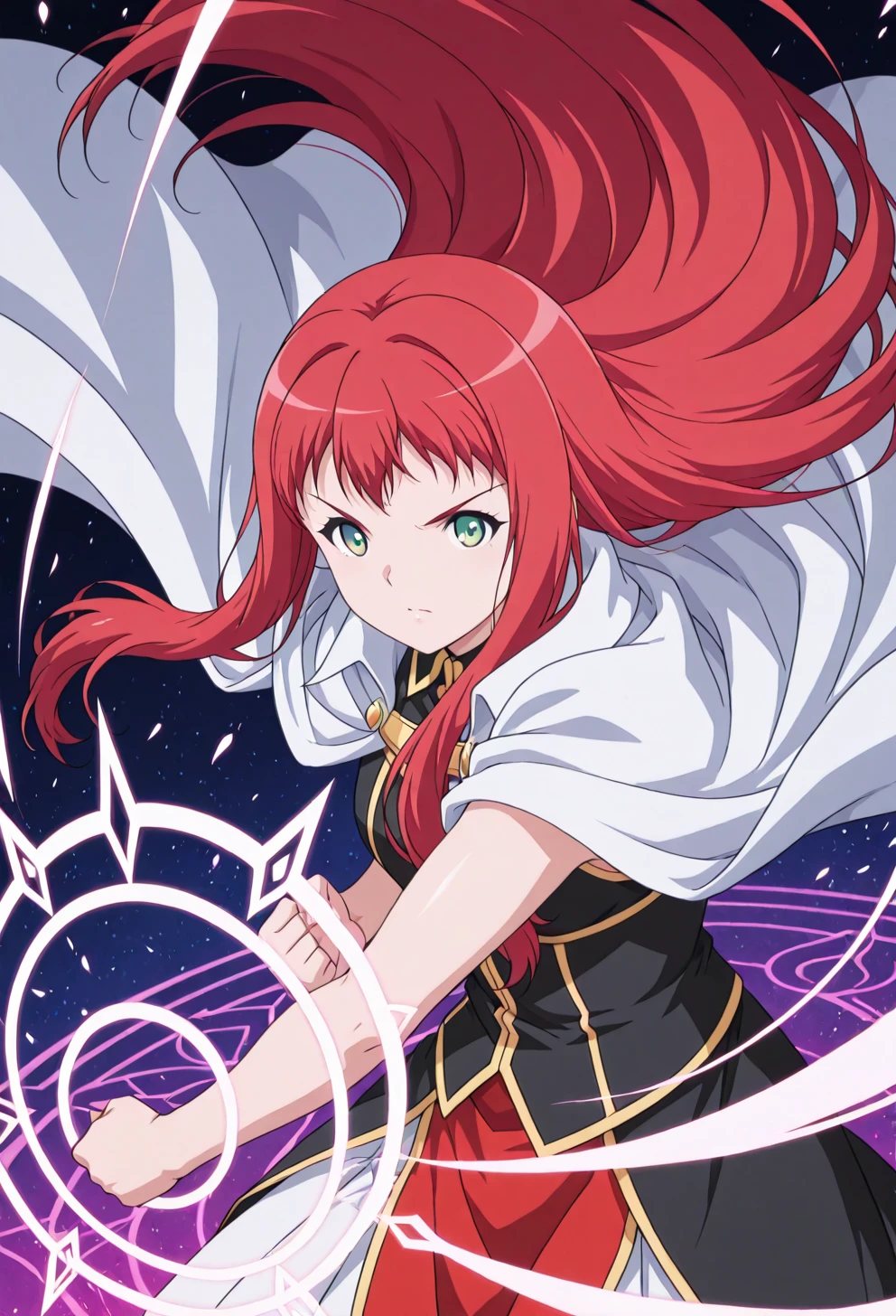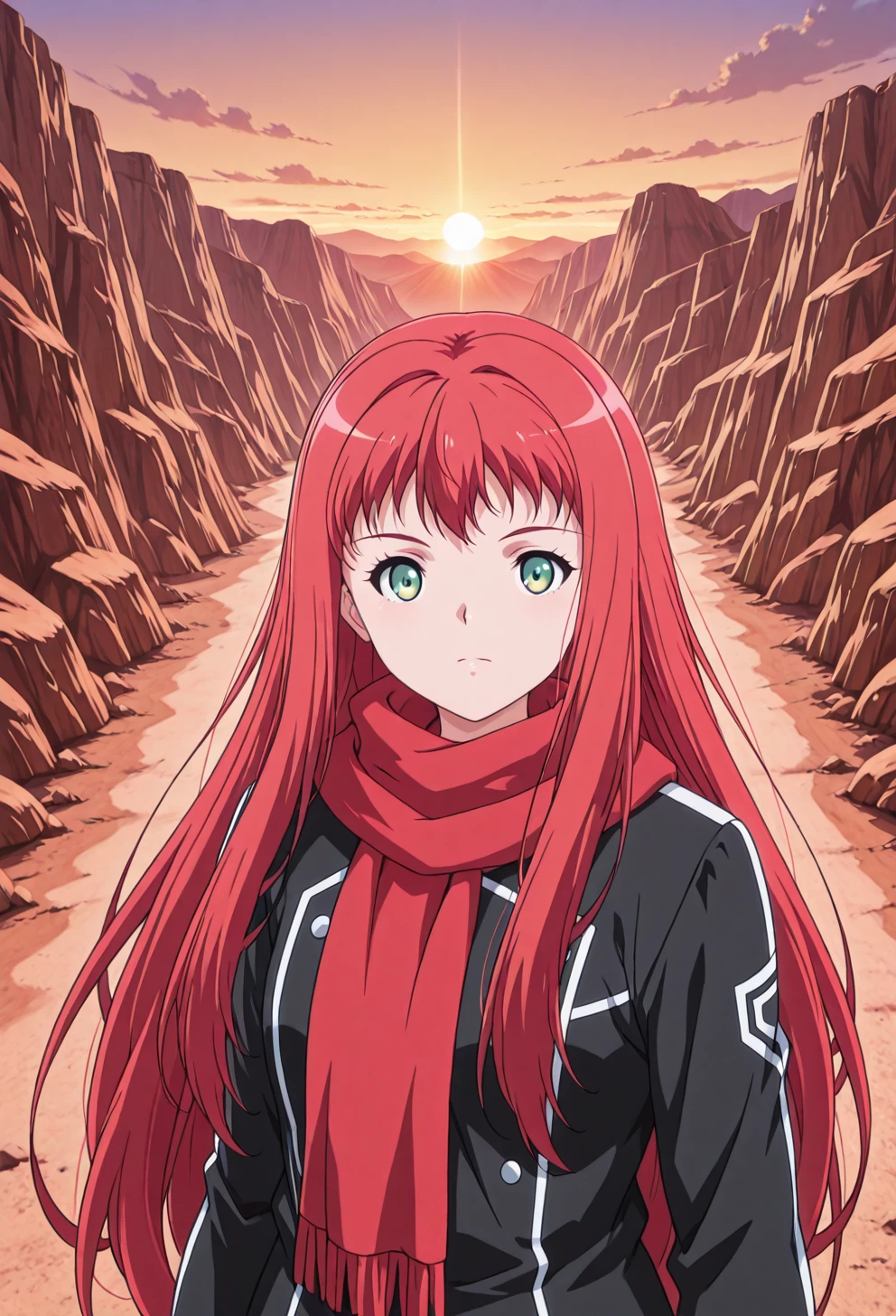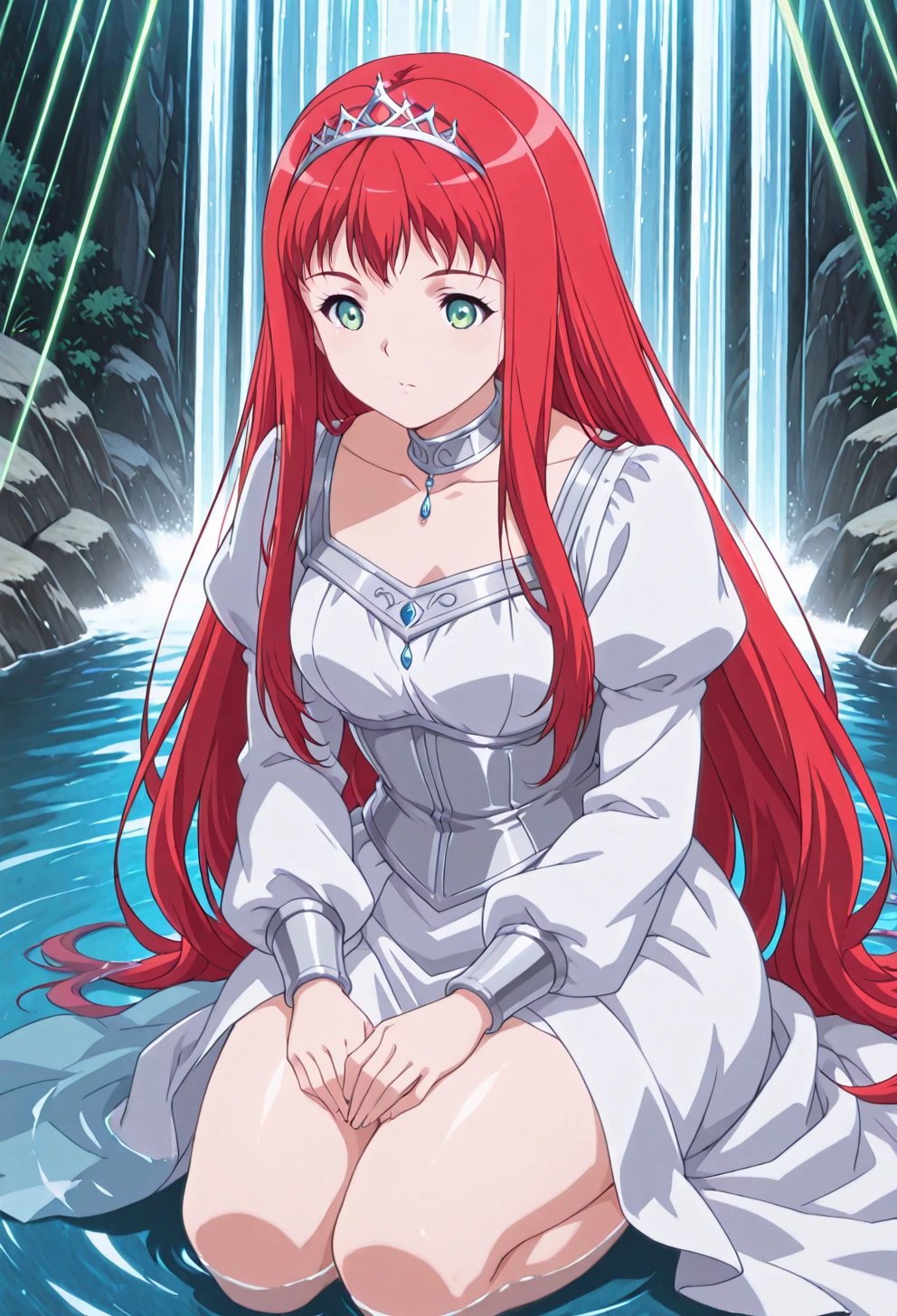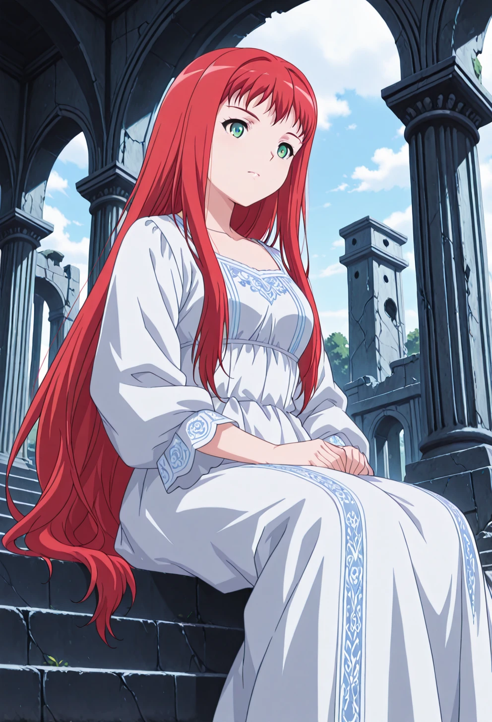 Trigger+CharTags: sysdeep_char22, 1girl, solo, long hair, very long hair, green eyes, red hair, straight hair