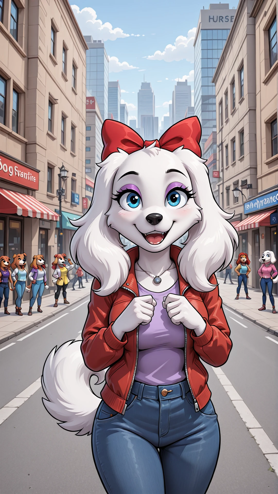 SFFaySpaniel, dog girl, white fur, red hair bow,